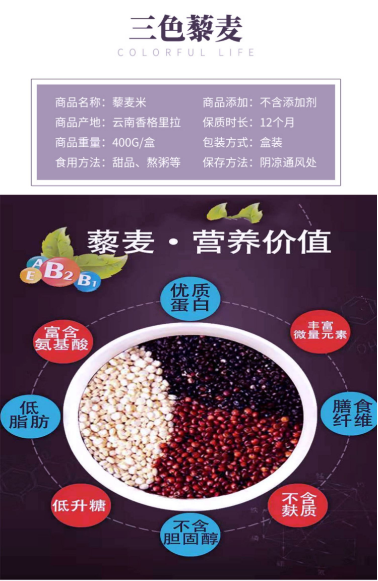 【扶贫】云南省香格里拉 多彩藜麦 400g/盒