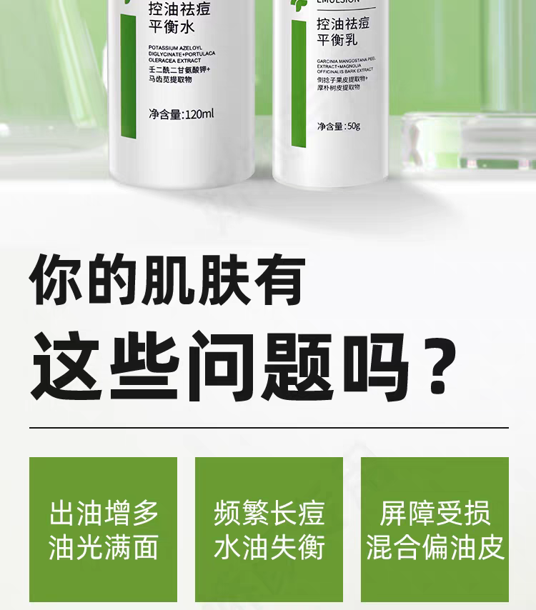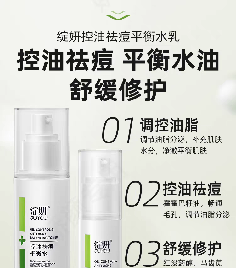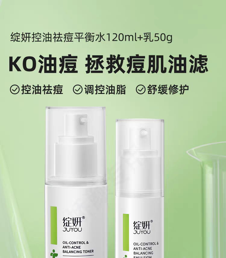 绽妍控油祛痘平衡水乳套装 油皮油痘肌清爽祛痘修护保湿补水护肤品