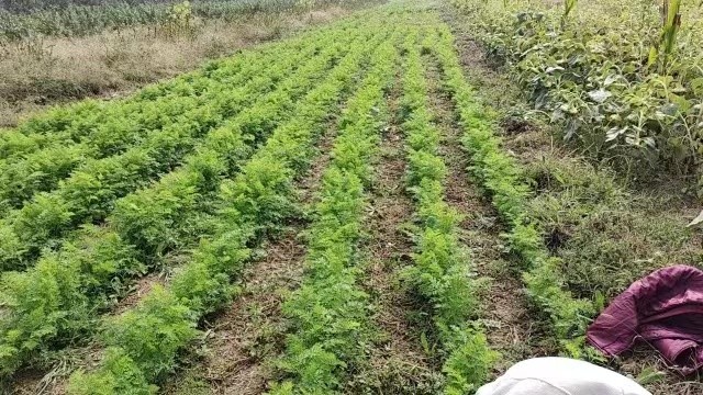 【种植过程】从今年八月开始撒种以来,刚开始因天旱出苗不理想,但在关键时刻,一场及时雨,解救了胡萝卜基地的燃眉之急,从此胡萝卜在自然中自然成长。