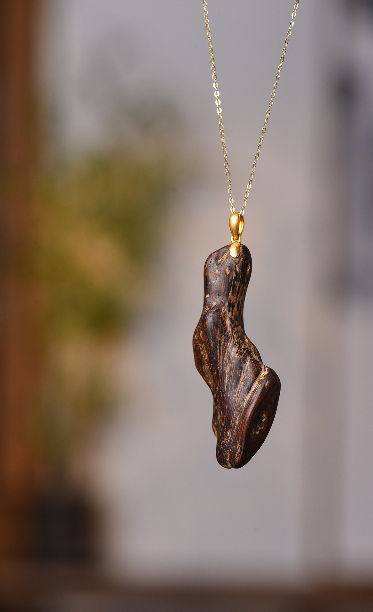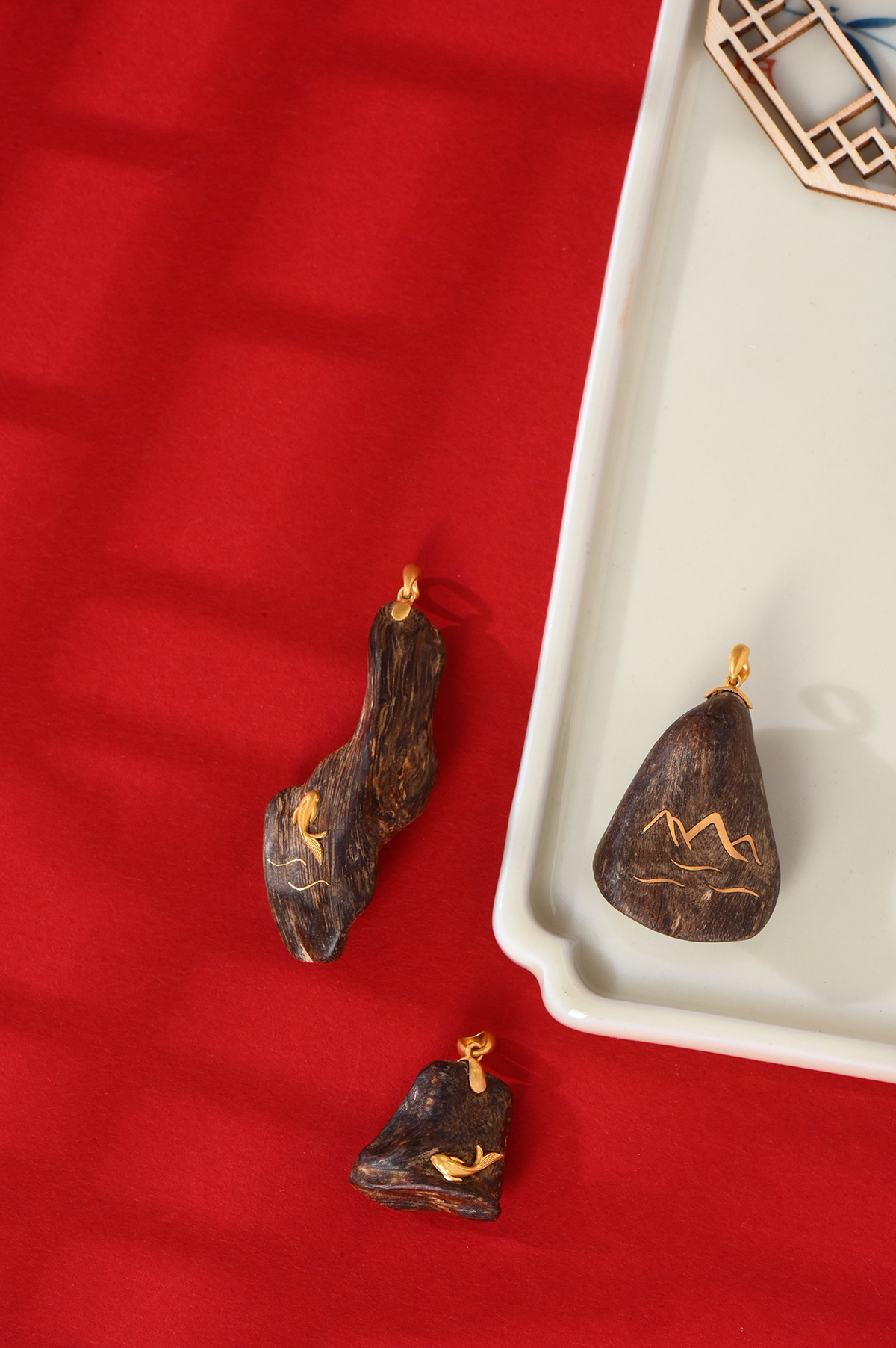 简单的打磨后,采用古法金工艺,把每块沉香都变得熠熠生辉,让人眼前一亮。