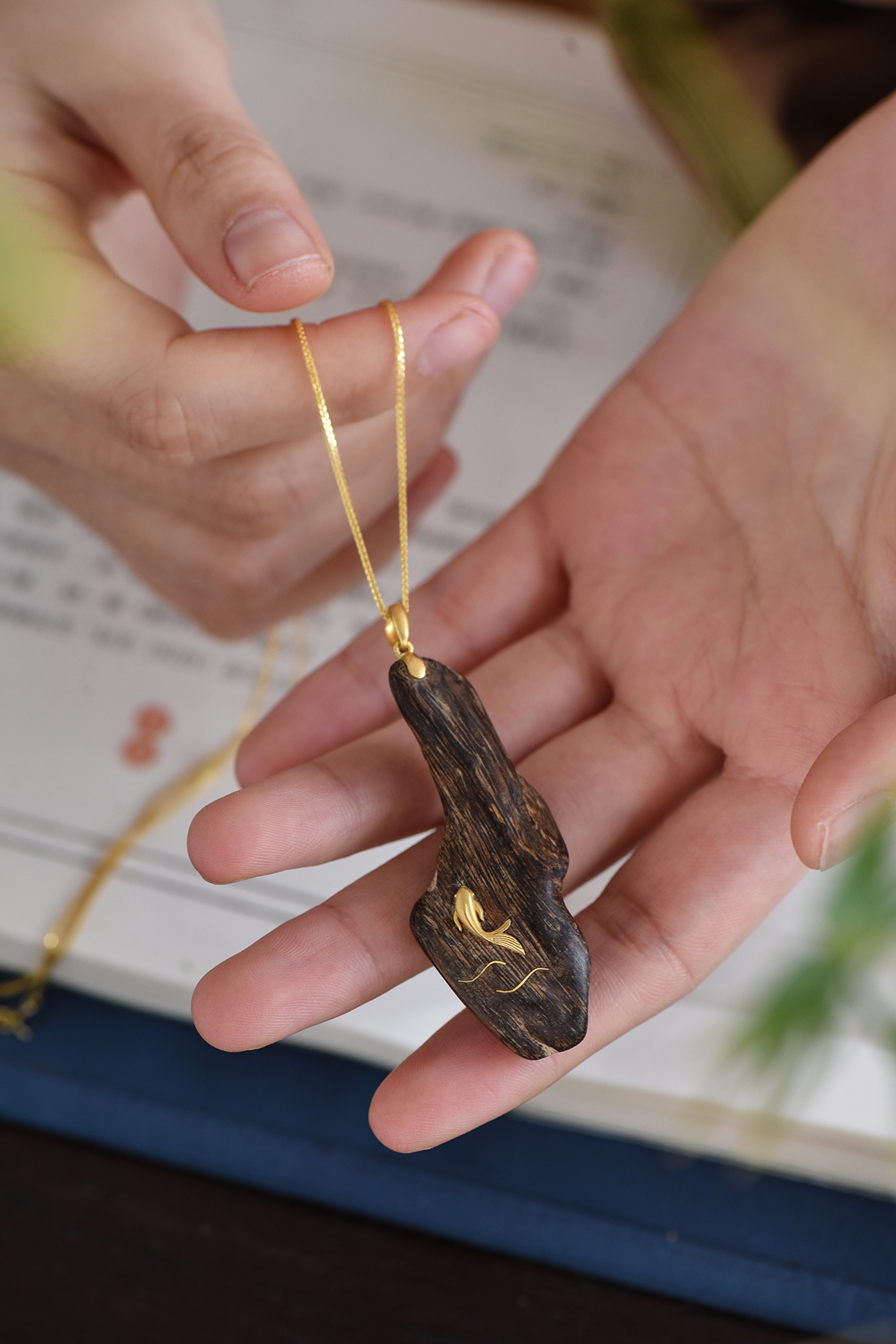 深色的沉香是幽深的湖水或厚重的土壤,金色的鱼儿在其中悠然游弋。这创造了一个“方寸之间,可见天地”的意境。