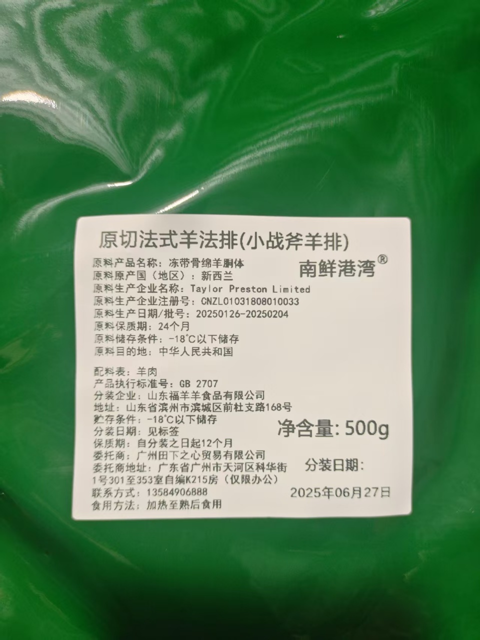 严选 | 原切法式小羊排 500克*2袋 鲜嫩不膻 奶香十足