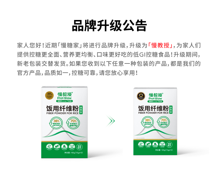 「慢教授ProfSlow」(原慢糖家),专注于科学控糖的健康营养品牌。由2位浙大校友创立,联合全球优秀的食品科学家和健康营养专家,为有控糖需求的用户研发好吃、低升糖的健康食品和营养补充剂。