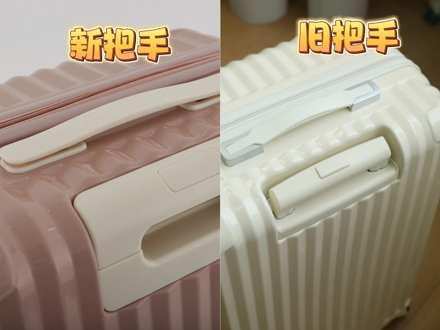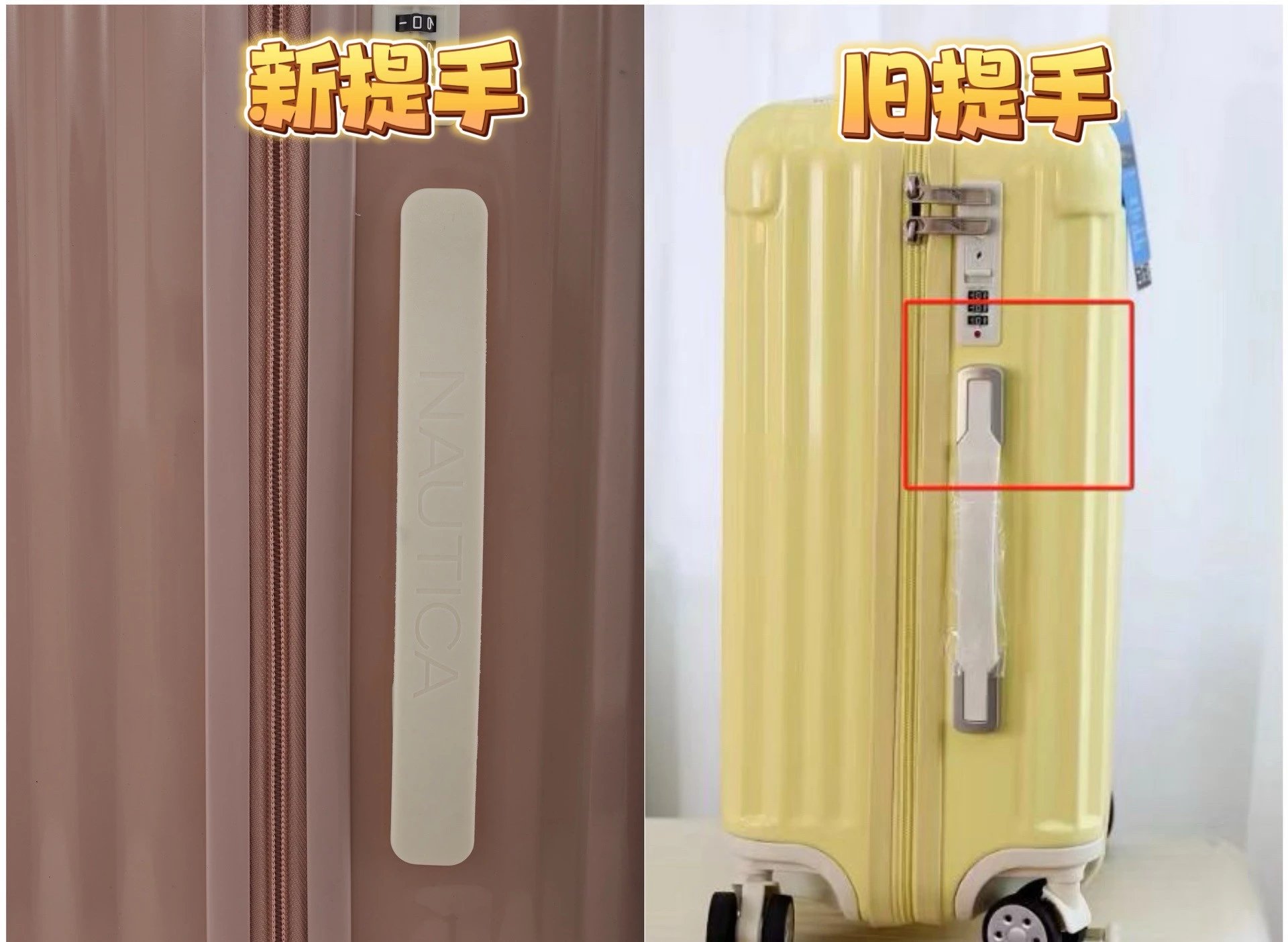 ✅可回弹把手,不勒手轻松提起 箱子有上方和侧面共两个回弹提手,微微柔软的PVC材质 回弹性更好,舒服不硌手