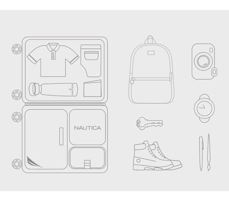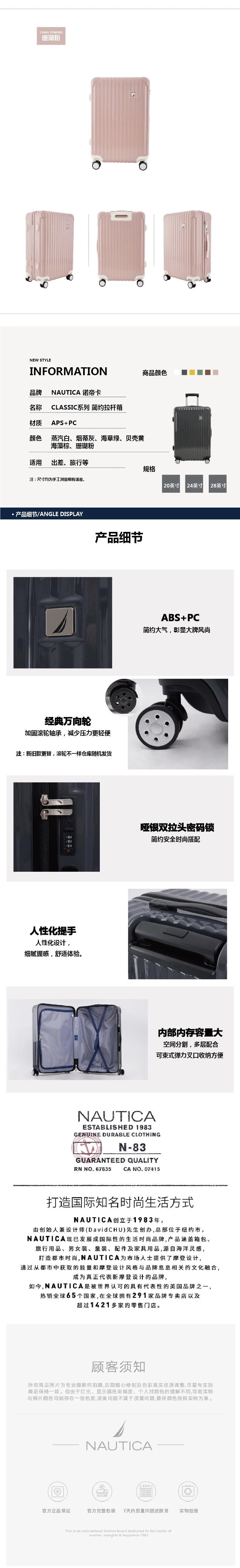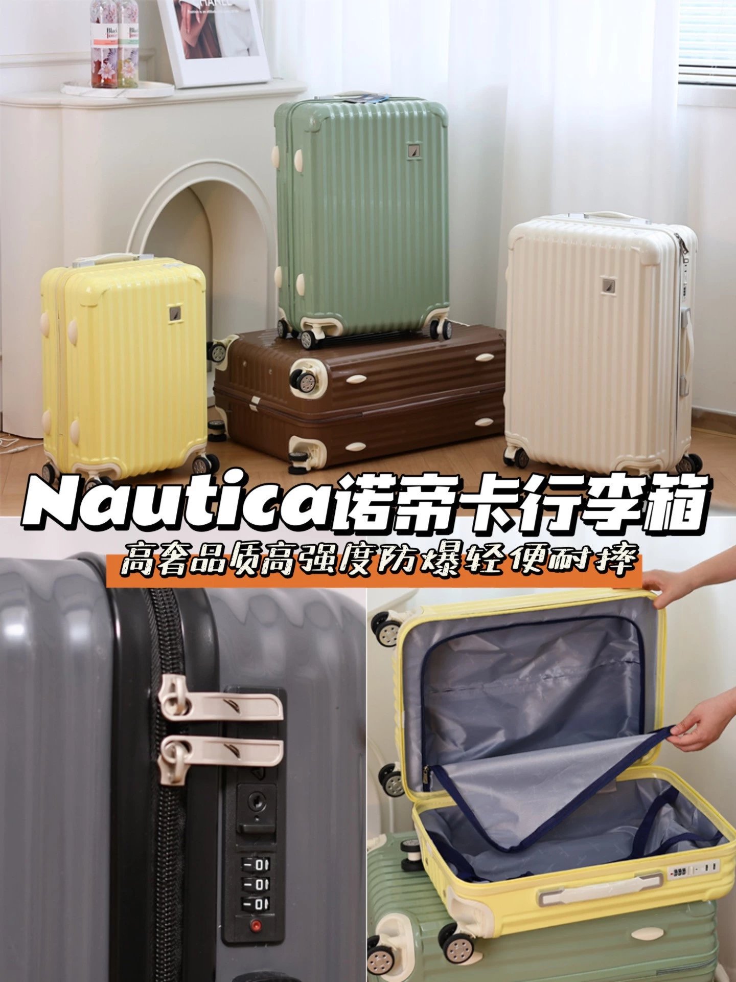 🔅诺帝卡(Nautica) 行李箱的头部品牌 1983年起源于美国 由华裔籍设计师一手创立 名称来源于拉丁语“Nauticus”,意为船只 三角帆的logo则是冒险、活力与经典的象征 各大商场都有专柜,紧邻大牌奢侈品 专柜诺帝卡箱子都是几千元一个