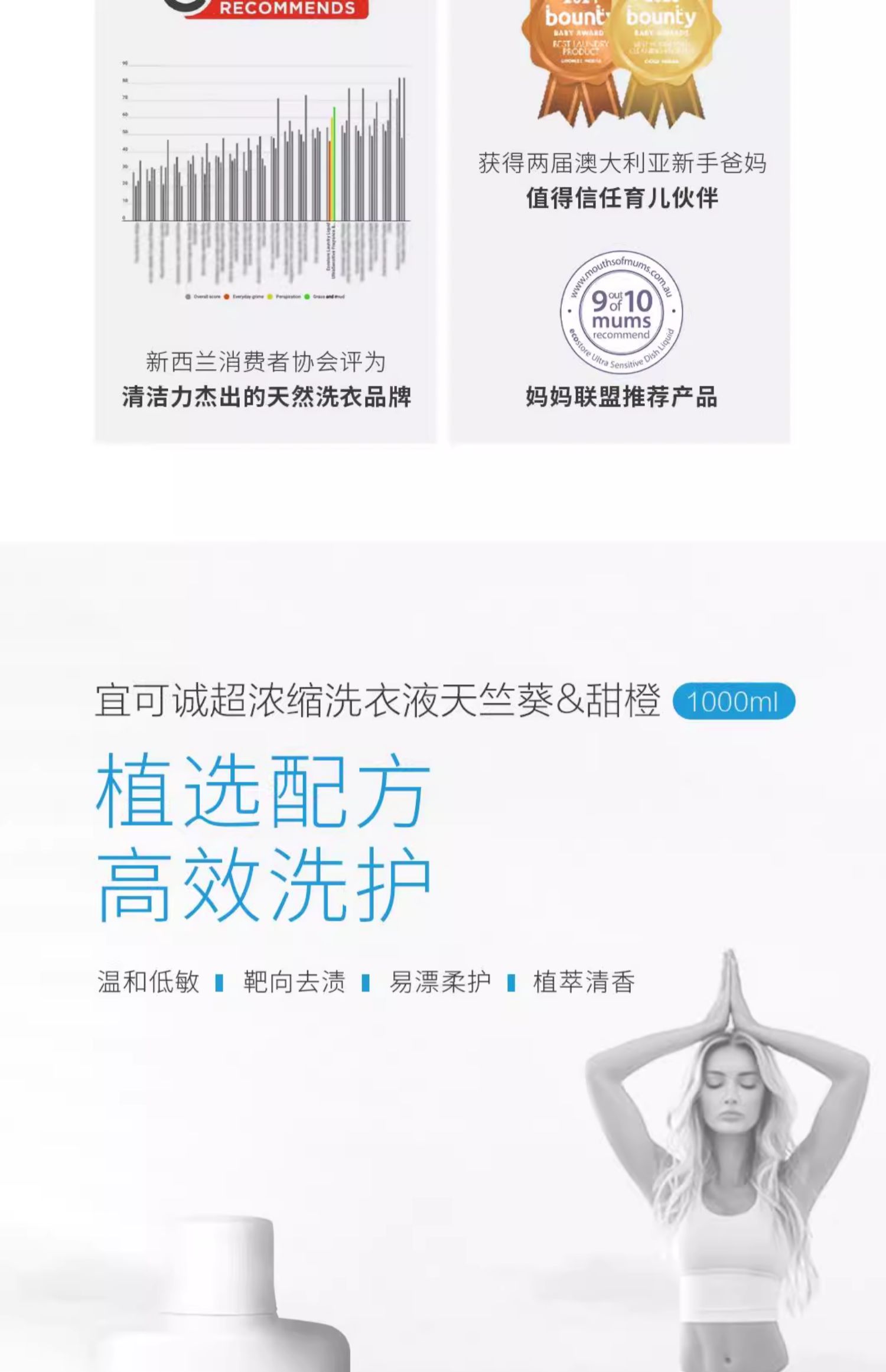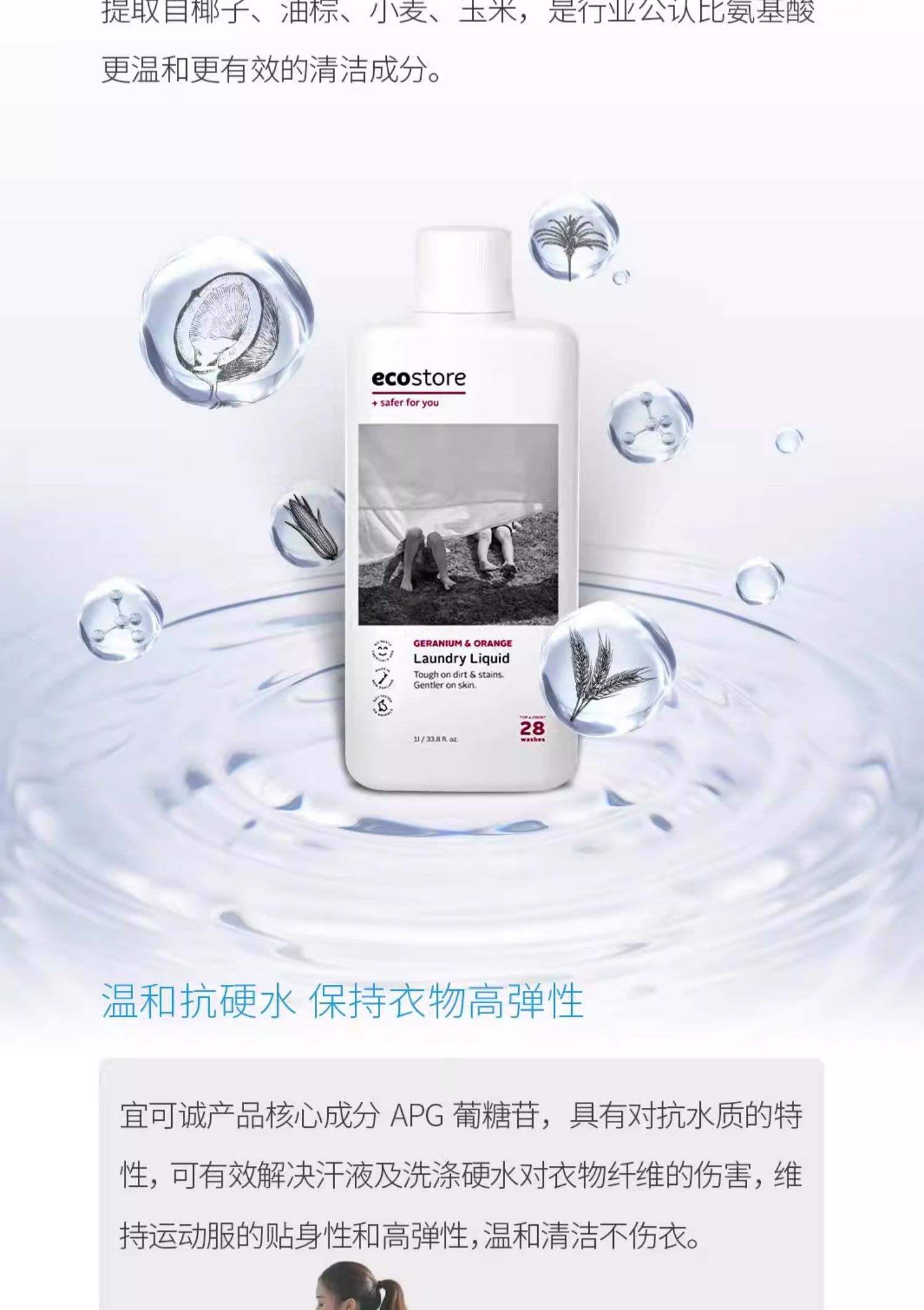 【保税仓】宜可诚天竺葵和橙子、牡丹和玫瑰洗衣液1升