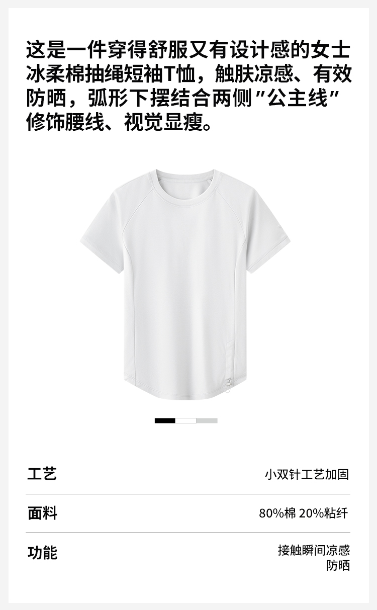 拇指白小T女士冰柔棉抽绳短袖T恤无限系列