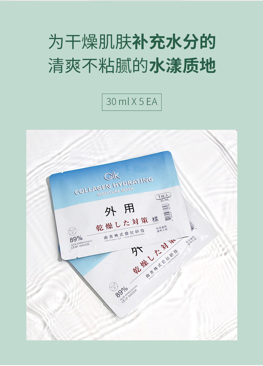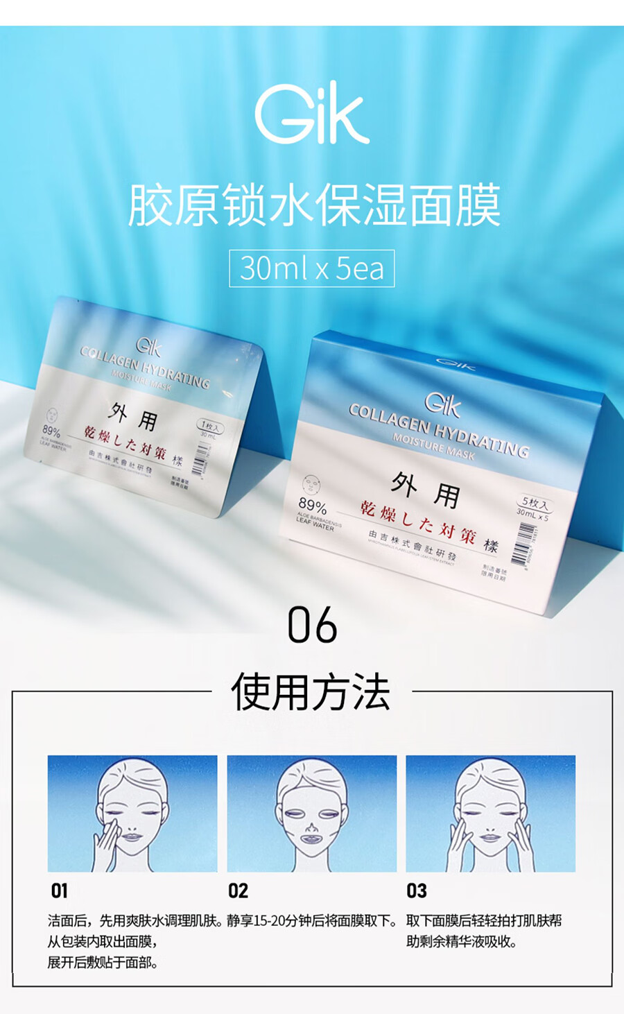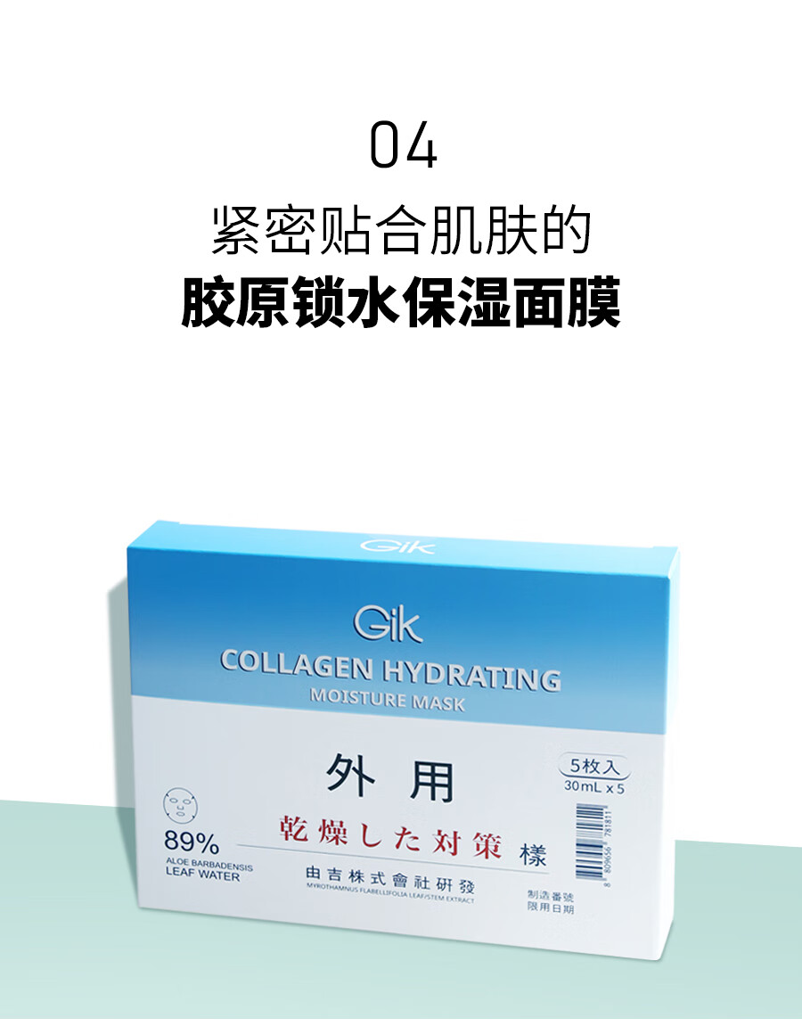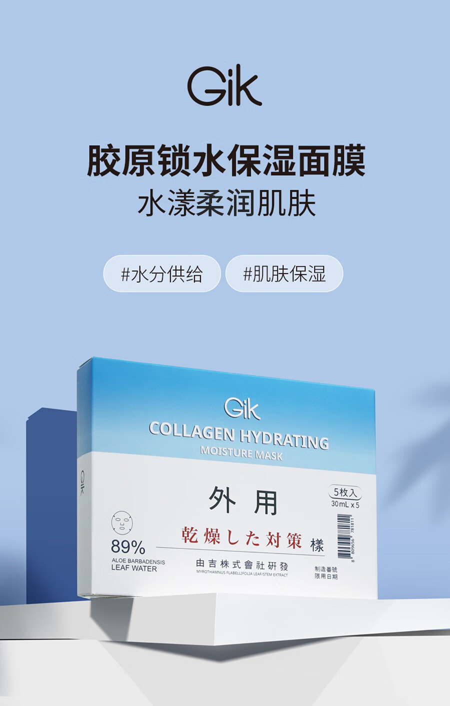 【特卖】GIK 胶原锁水保湿面膜 30ml*5片【保质期:2026年2月】