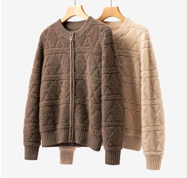 皮草感!重磅牛货!圆领加厚针织开衫外套女宽松2025年冬