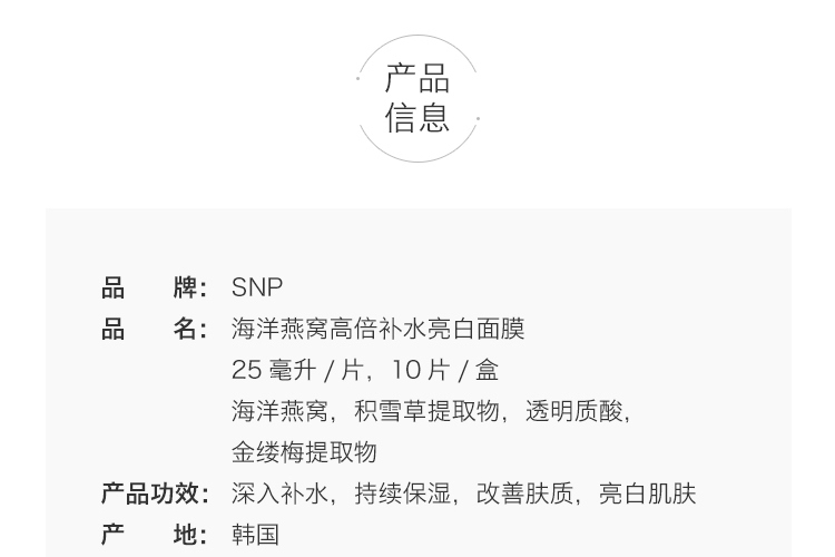 SNp爱神菲海洋燕窝补水精华面膜10片