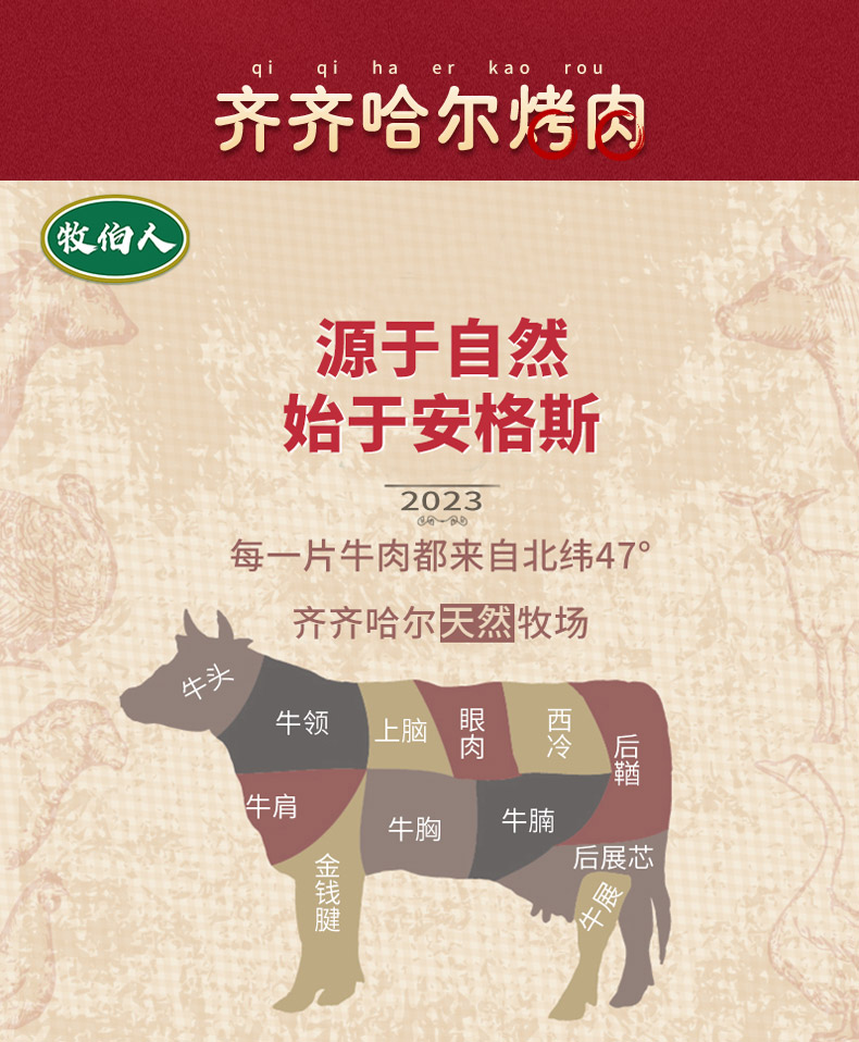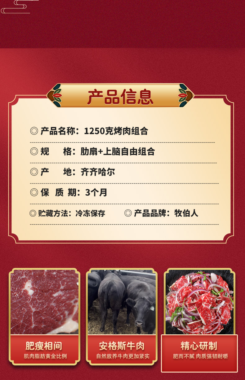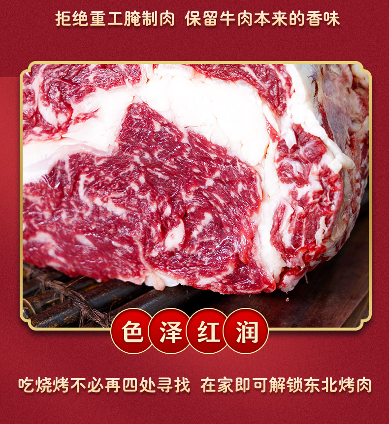 严选 | 牧伯人正宗齐齐哈尔烤肉 传统拌肉(肋扇+上脑组合)2.5斤装 东北传统拌肉 【下单即赠3袋20g蘸料】