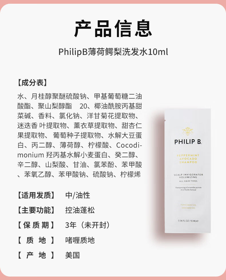 【保税仓】PhilipB薄荷鳄梨洗发水10ml