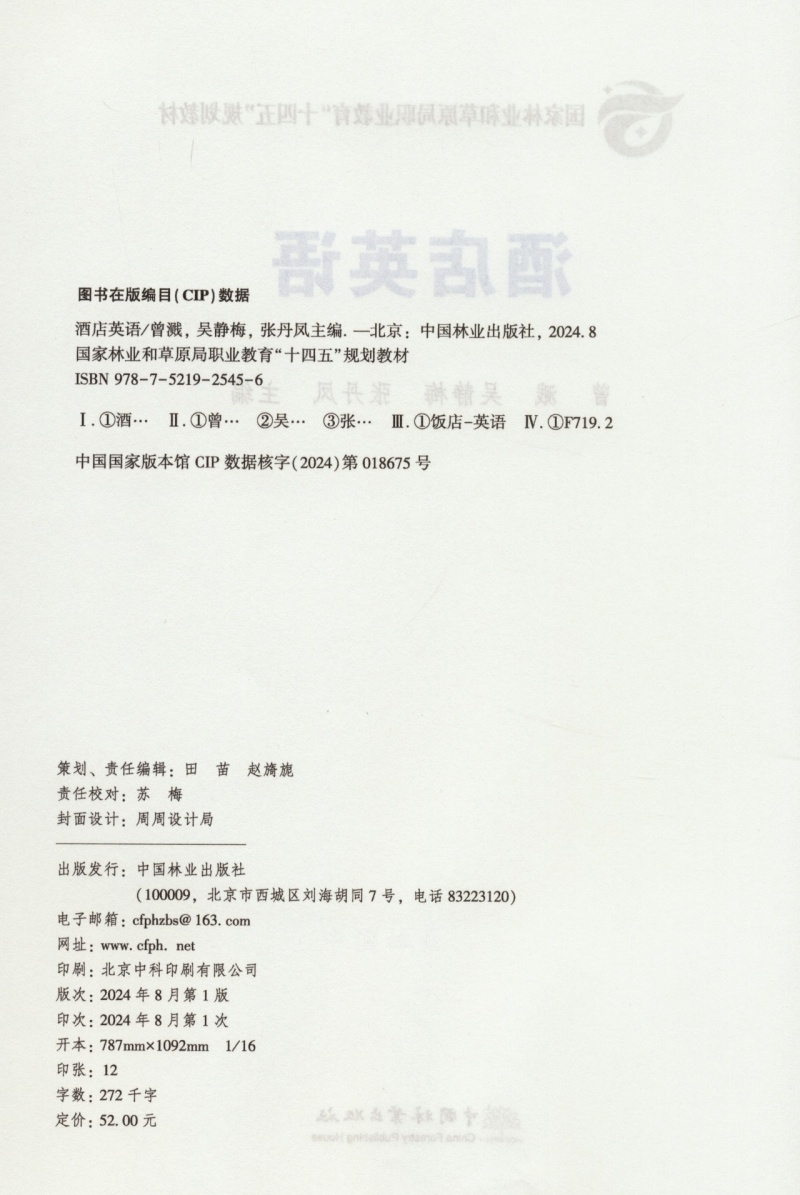 酒店英语(国家林业和草原局职业教育十四五规划教材) &2545