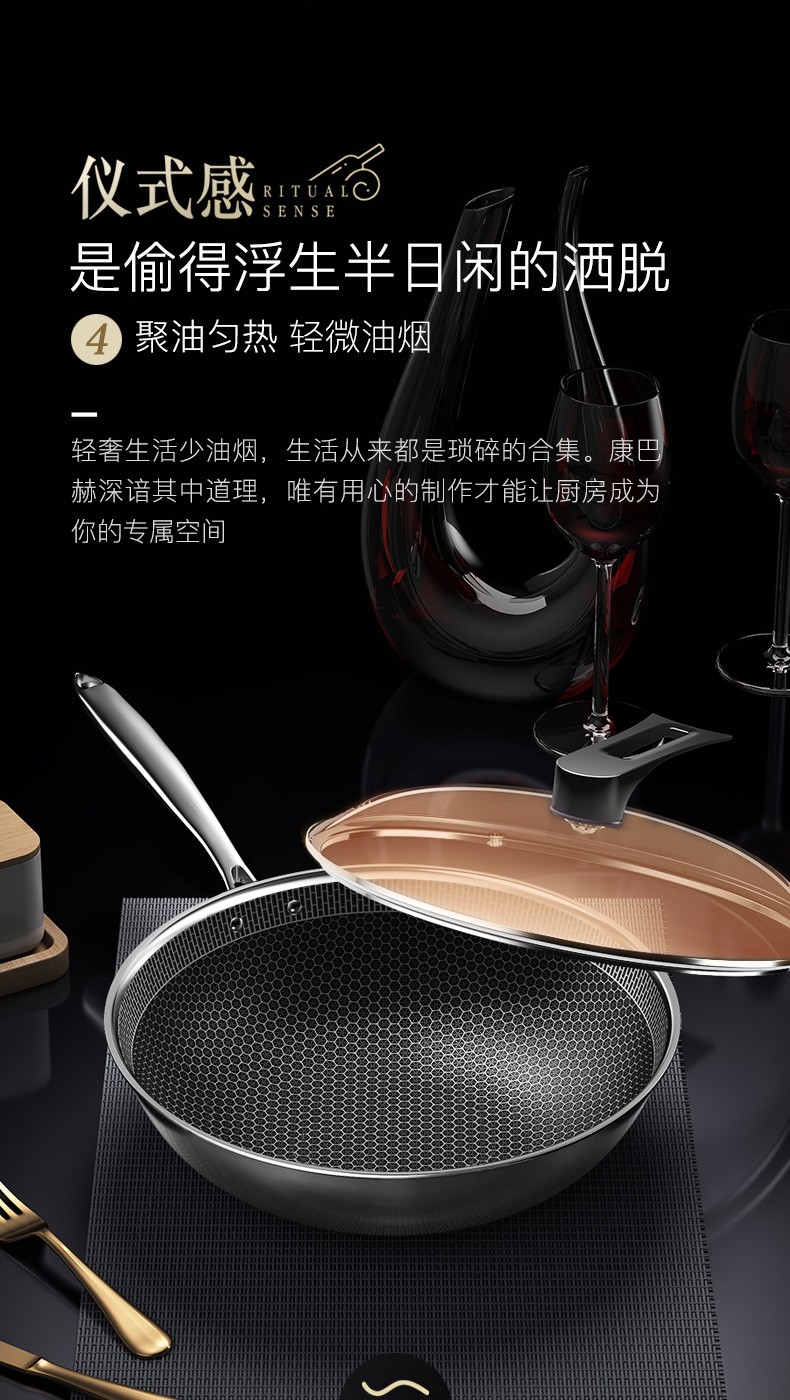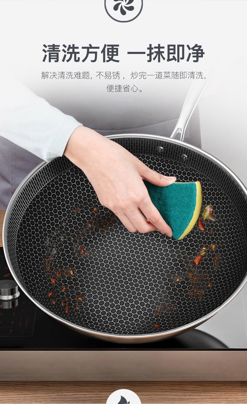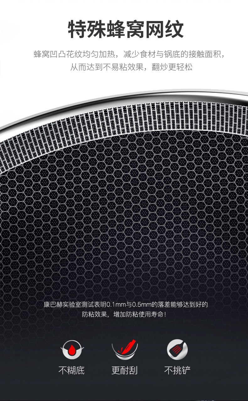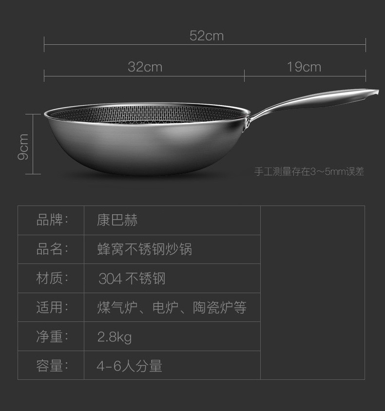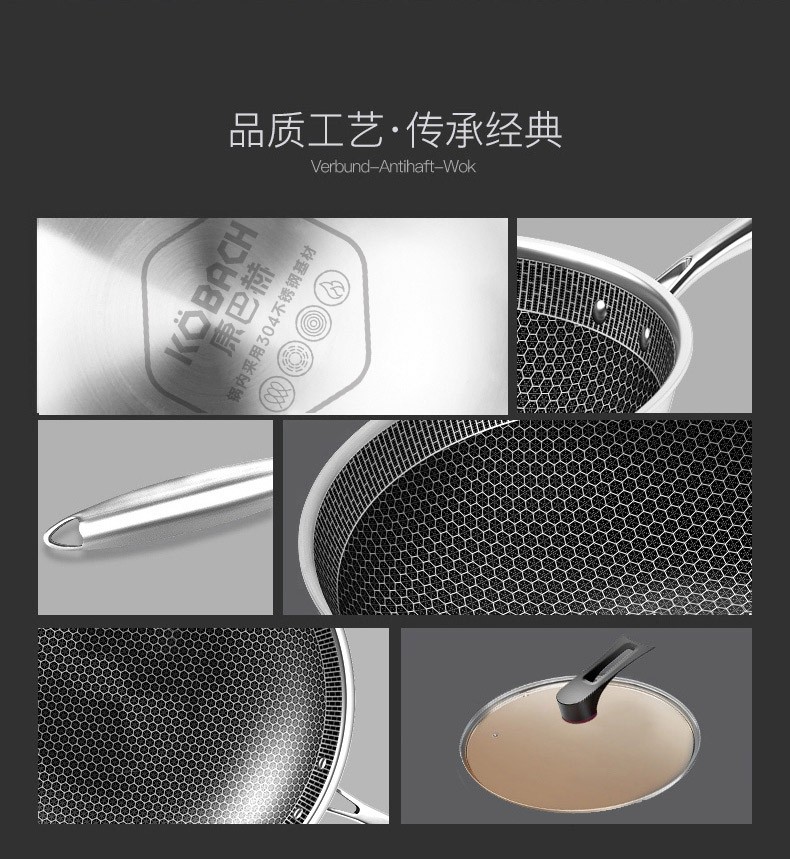 康巴赫(KBH)精英款蜂窝304炒锅煎锅 32cm CLK32D12