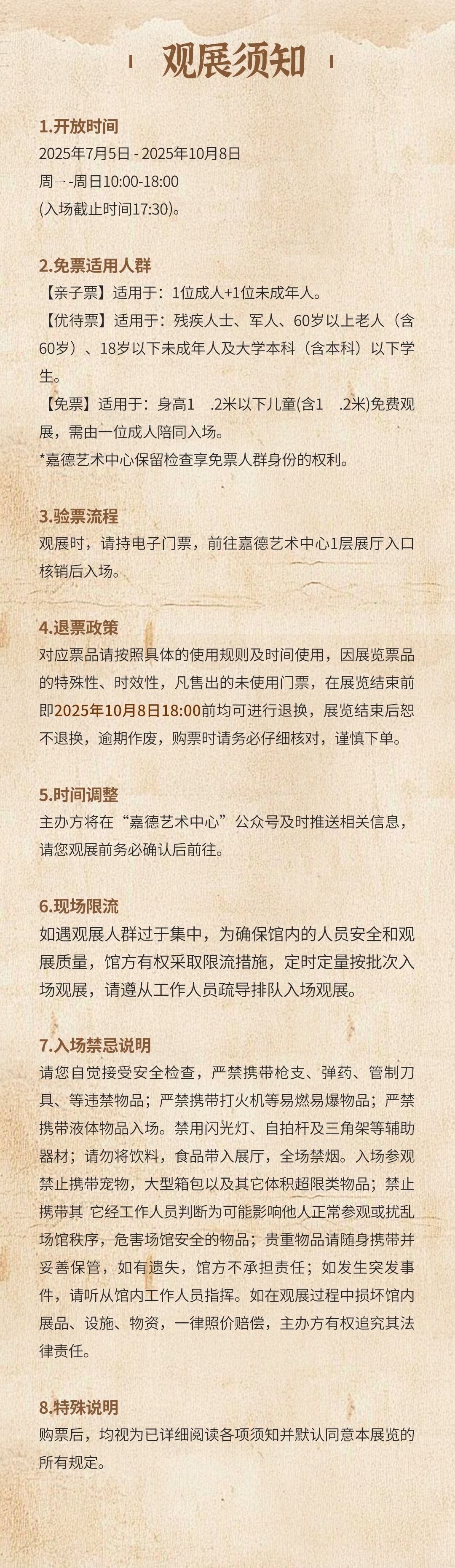 为回馈广大观众热情,满足观众观展需求。自7月28日(周一)起至10月8日,嘉德艺术中心周一不闭馆,正常开放❗️
