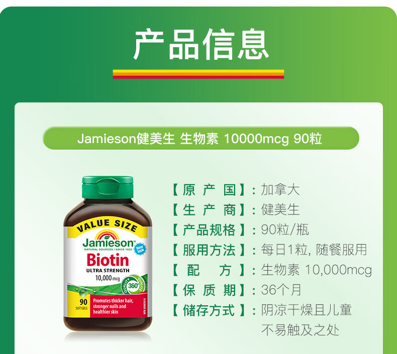 【保税仓】Jamieson健美生健美生生物素10000MCG90粒/瓶
