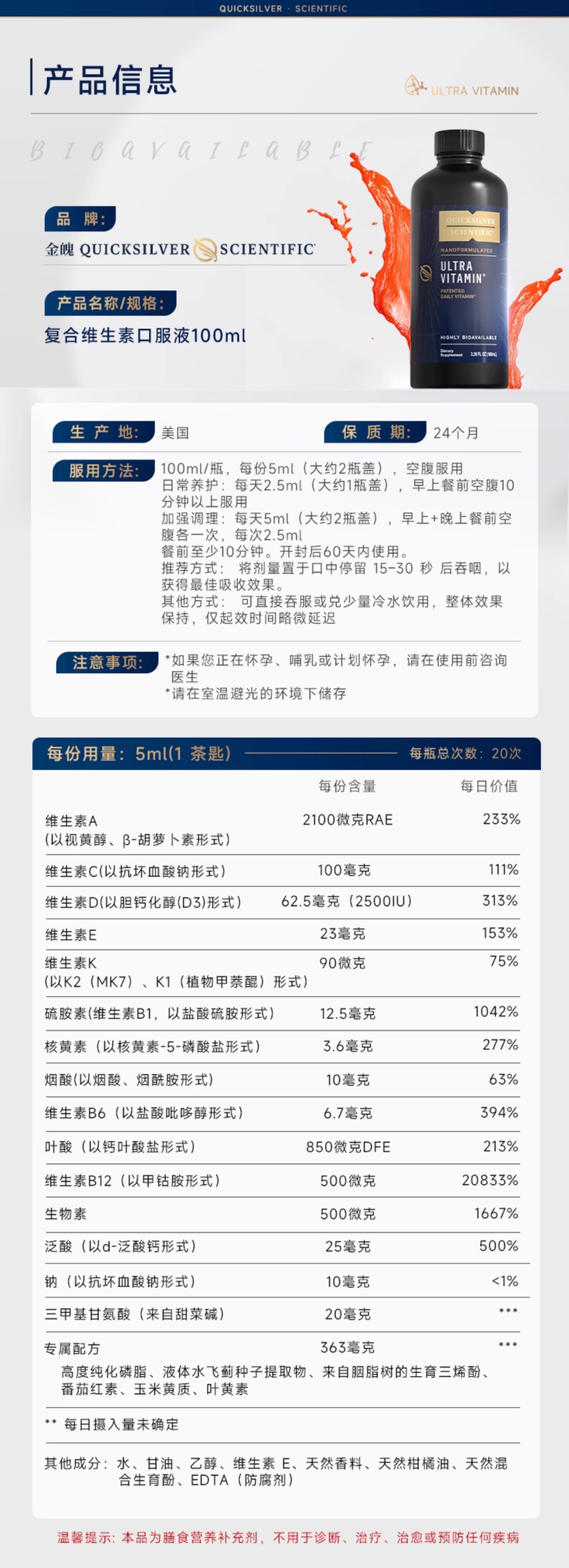 【脂质体细胞营养-超级每日复合维生素溶剂】Ultra Vitamin 100毫升 脂质体B+C+D 独特添加番茄红素 叶黄素 线粒体支持