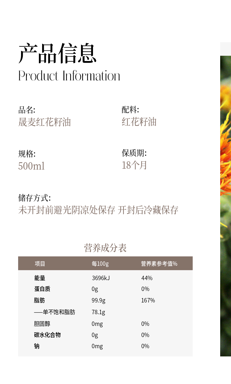 【一乐老师专属】Hong花籽油 一级冷榨Hong花籽油 75%亚油酸 出口品质