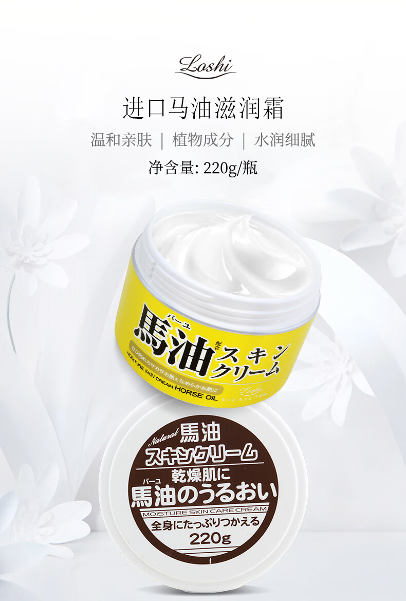 Loshi日本进口马油面霜防干燥保湿护手霜身体润肤乳滋润马油膏 220g/瓶
