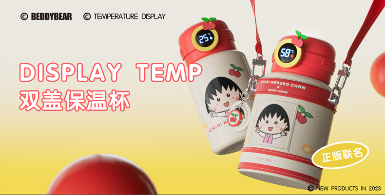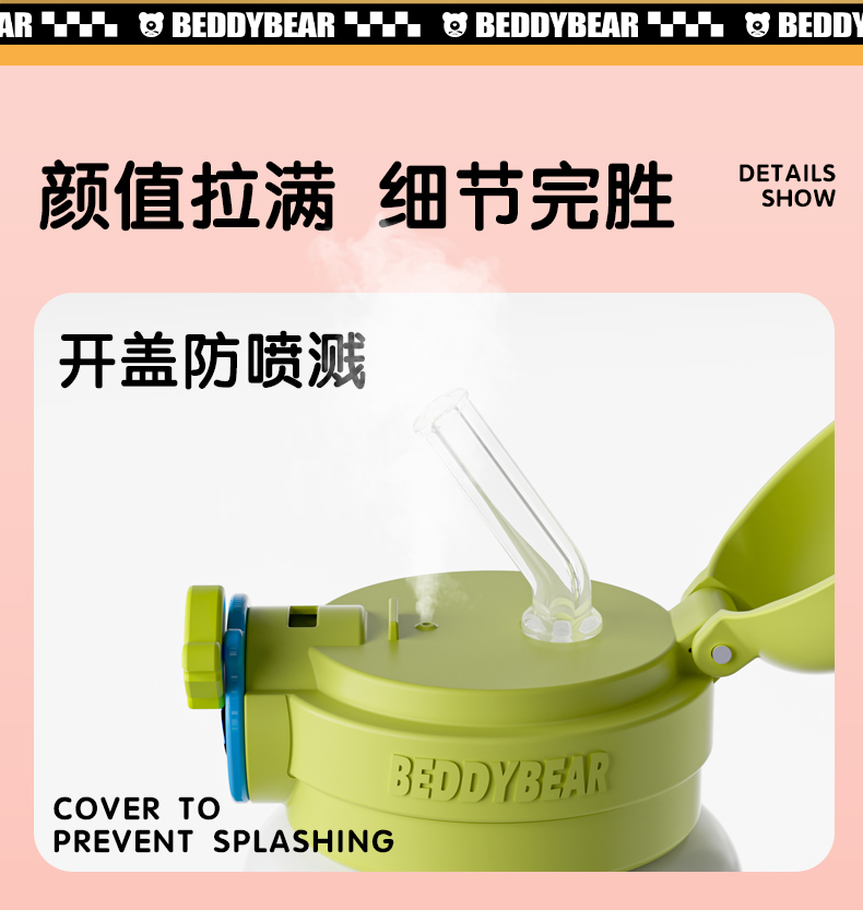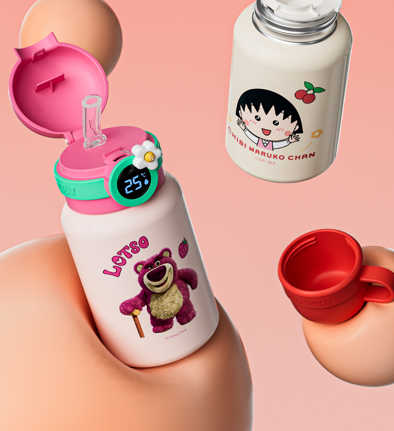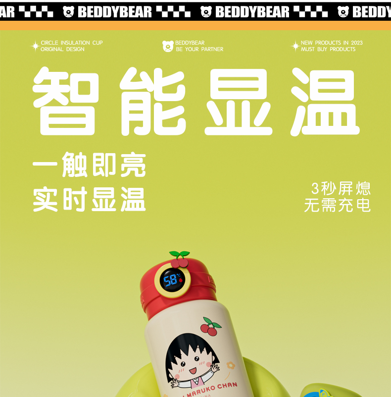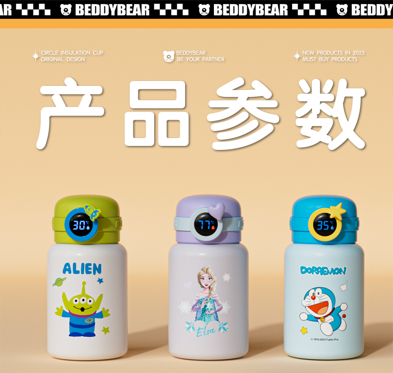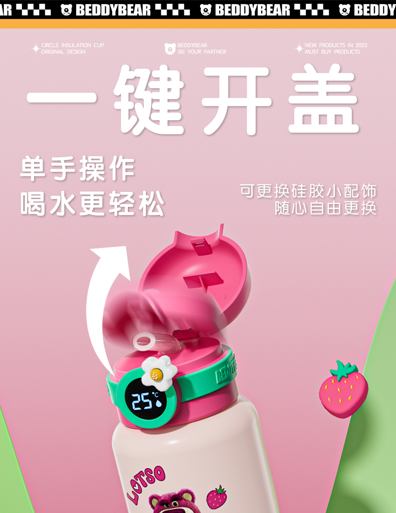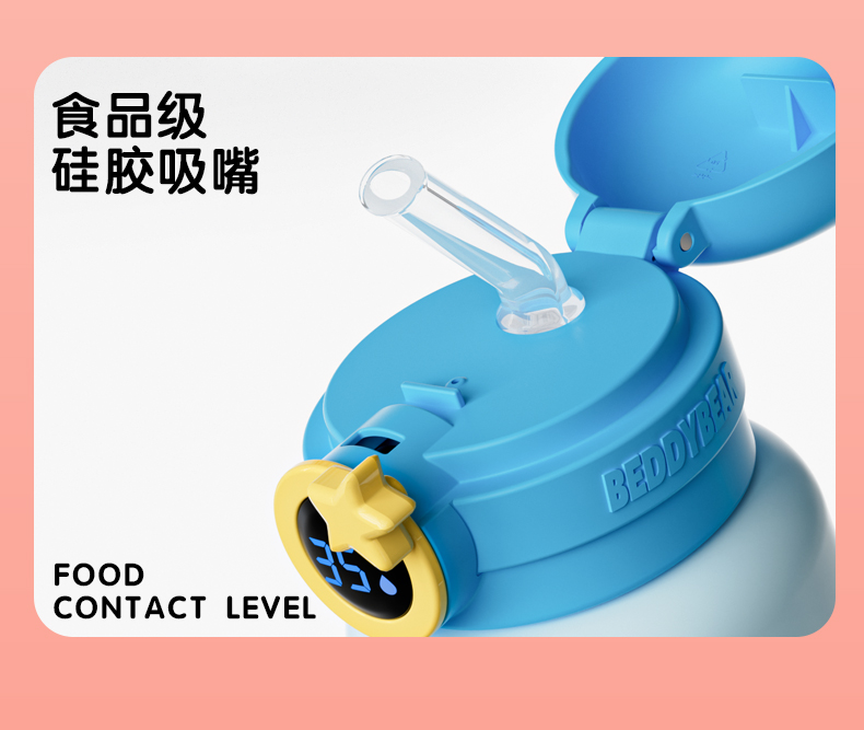 韩国杯具熊(BEDDYBEAR)圈圈智能显温儿童保温杯SUS316不锈钢带吸管三盖两用学生水杯480ML