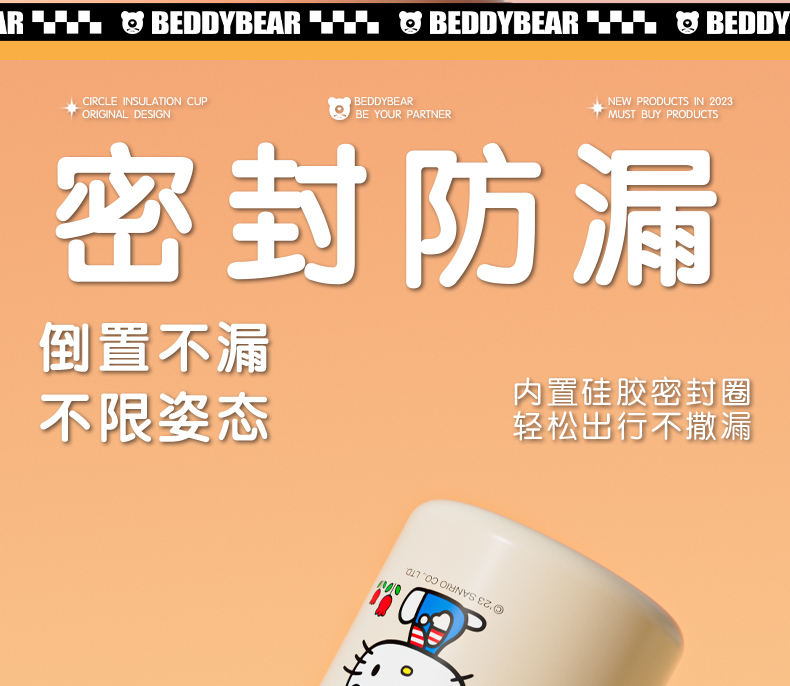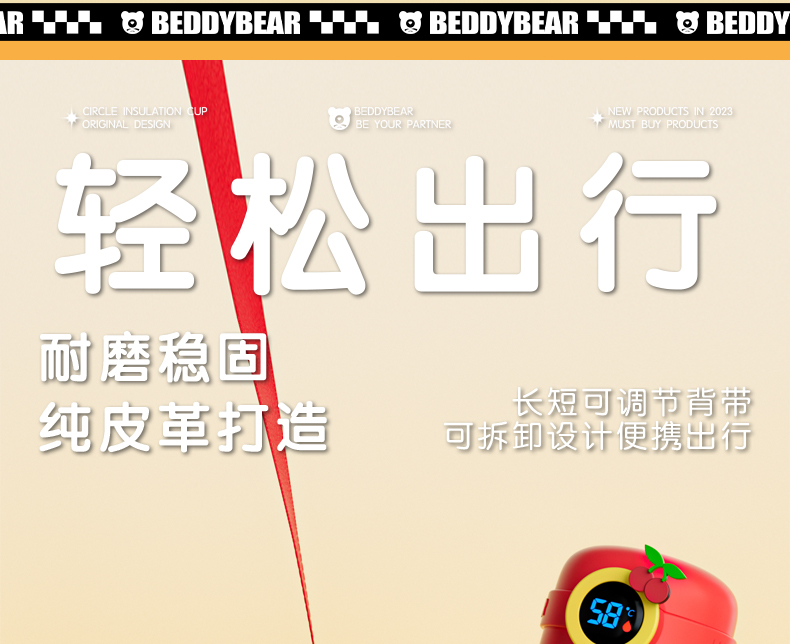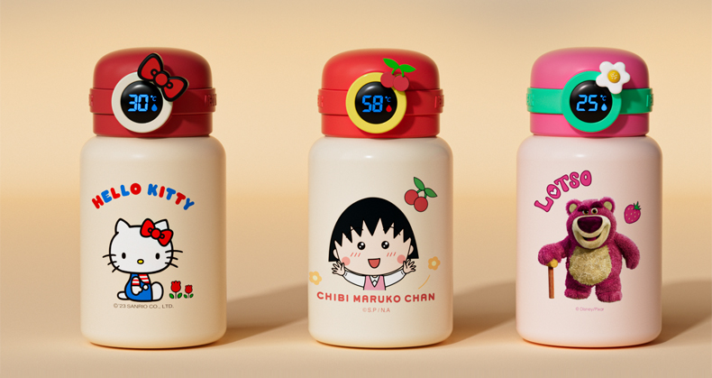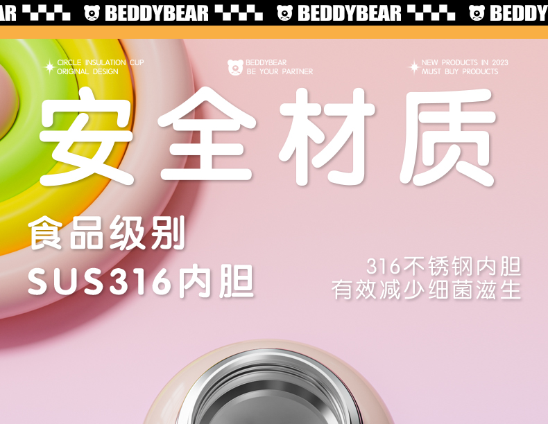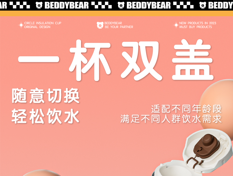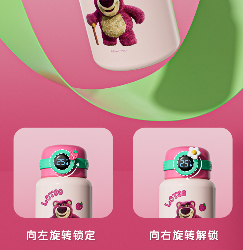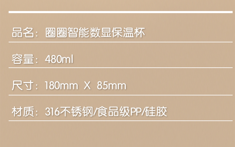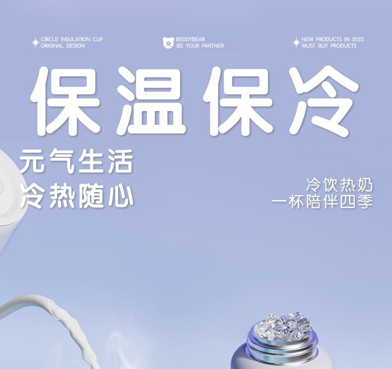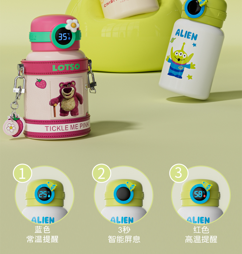 韩国杯具熊(BEDDYBEAR)圈圈智能显温儿童保温杯SUS316不锈钢带吸管三盖两用学生水杯480ML
