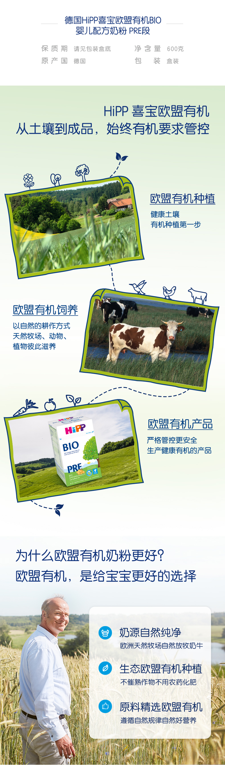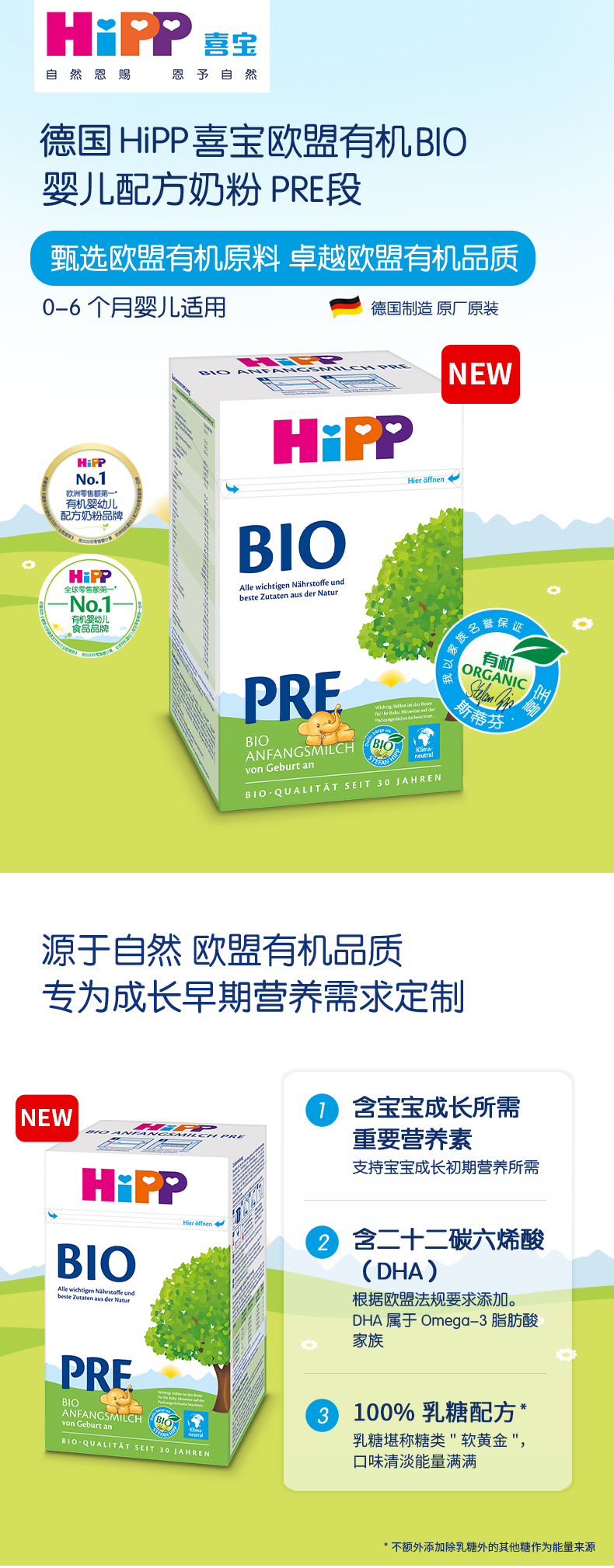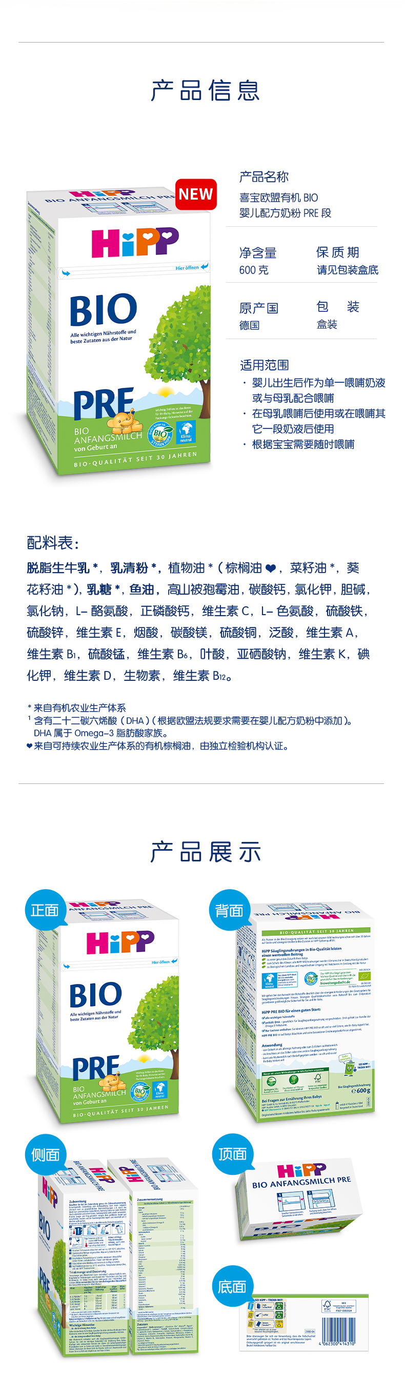 【跨境】德国喜宝有机奶粉pre段0-6个月600g