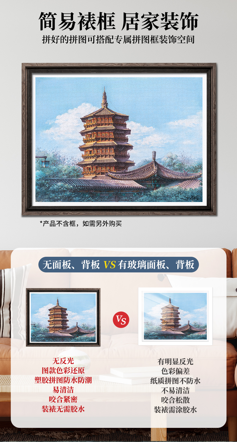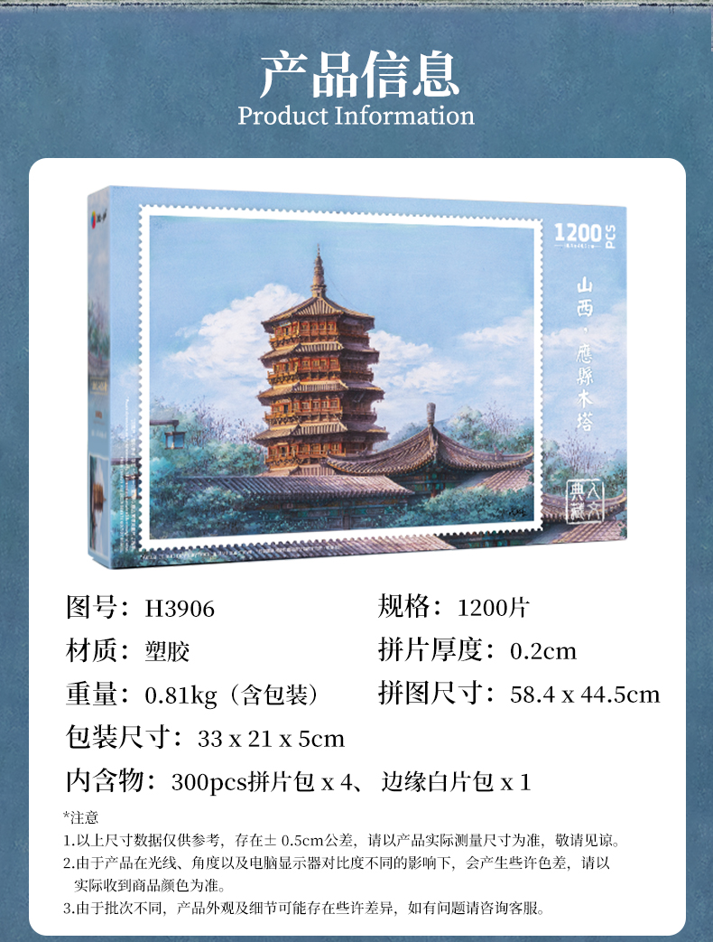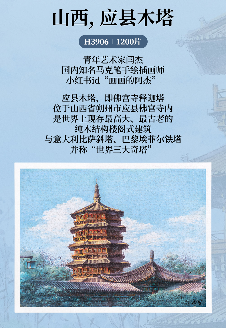 【折扣商品 不退不换】1200片 平面塑料拼图 H3906 闫杰-山西,应县木塔