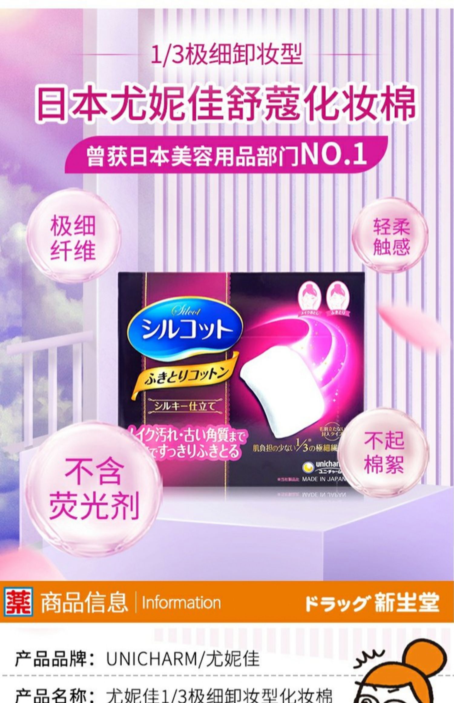 Unicharm尤妮佳超省水1/3化妆棉 32枚