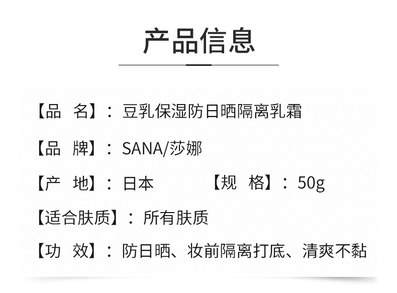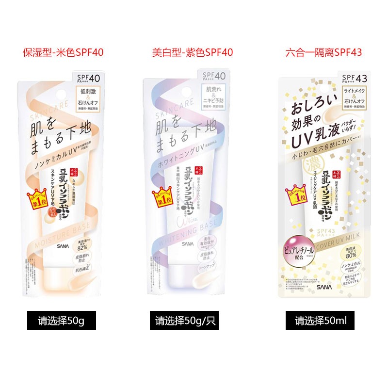 【保税仓】SANA/莎娜豆乳防晒隔离霜紫色美白款、米色保湿型SPF40 50g