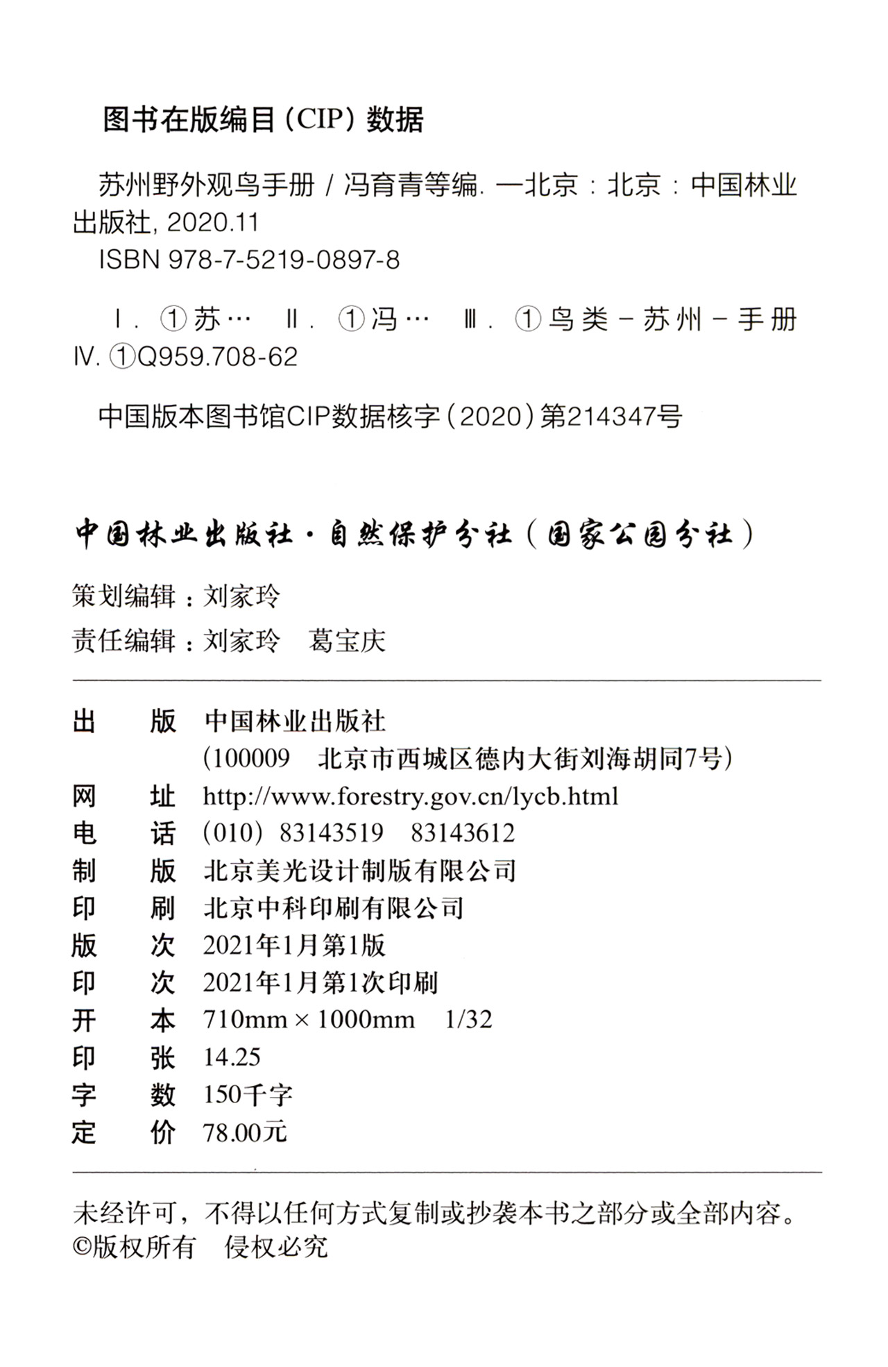 本书描述了374种鸟的形态特征、生境习性、在苏州分布和居留时间,对苏州地区鸟类进行了阶段性总结。希望这本手册能帮助更多的观鸟爱好者了解苏州鸟类,参与鸟类监测和湿地保护工作。