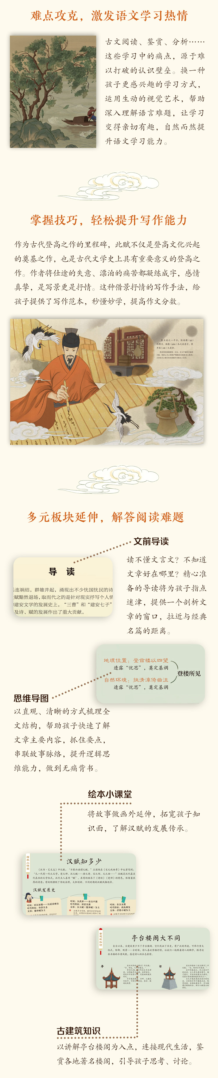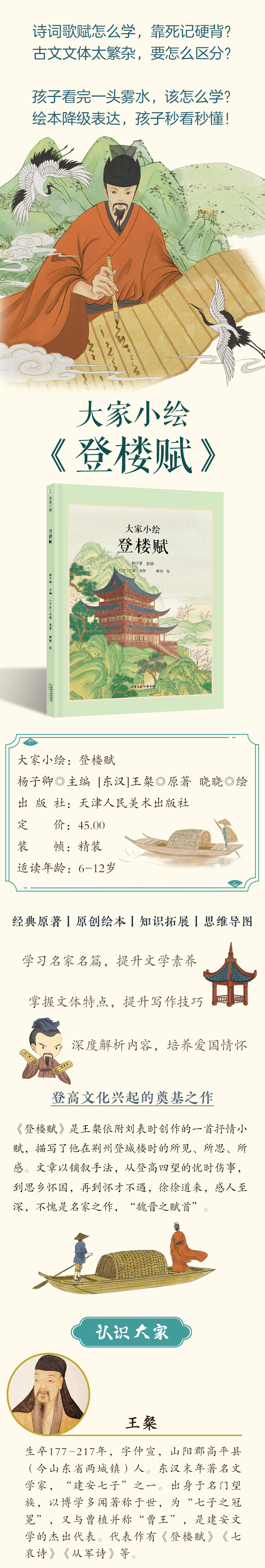 《登楼赋》是东汉文学家王粲客居荆州时所做的一首赋作。这篇赋虽篇幅短小,但内容充实,主要讲述了王粲到荆州第十三年的秋天,登上当阳东南的麦城城楼,感慨生逢乱世,才能不能得以施展而产生的思乡、怀国之情和怀才不遇的忧虑。表达了作者对国家和平统一的希望,也倾吐了渴望施展抱负、建功立业的心情。