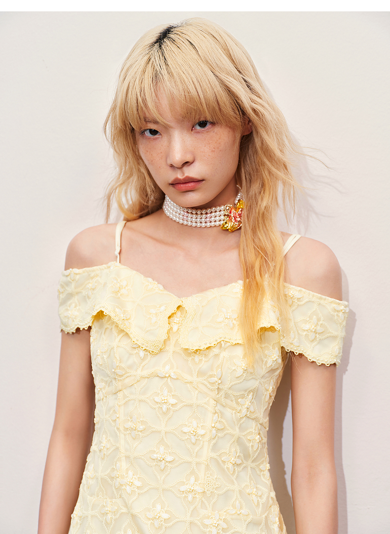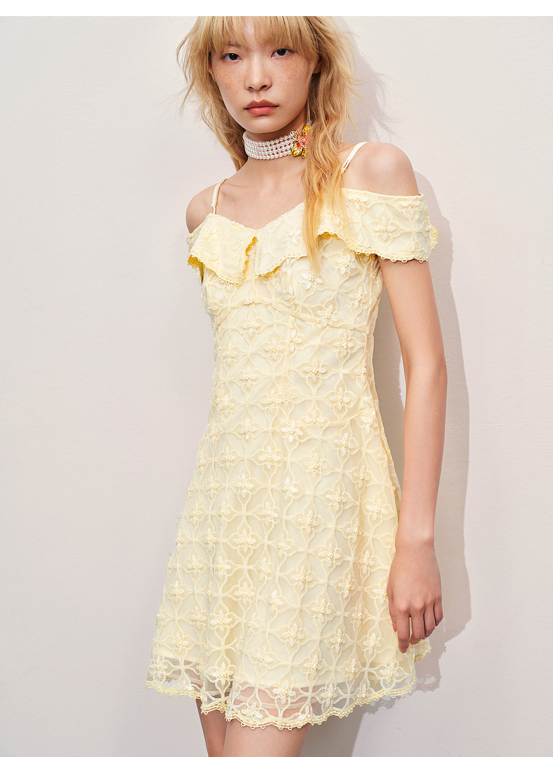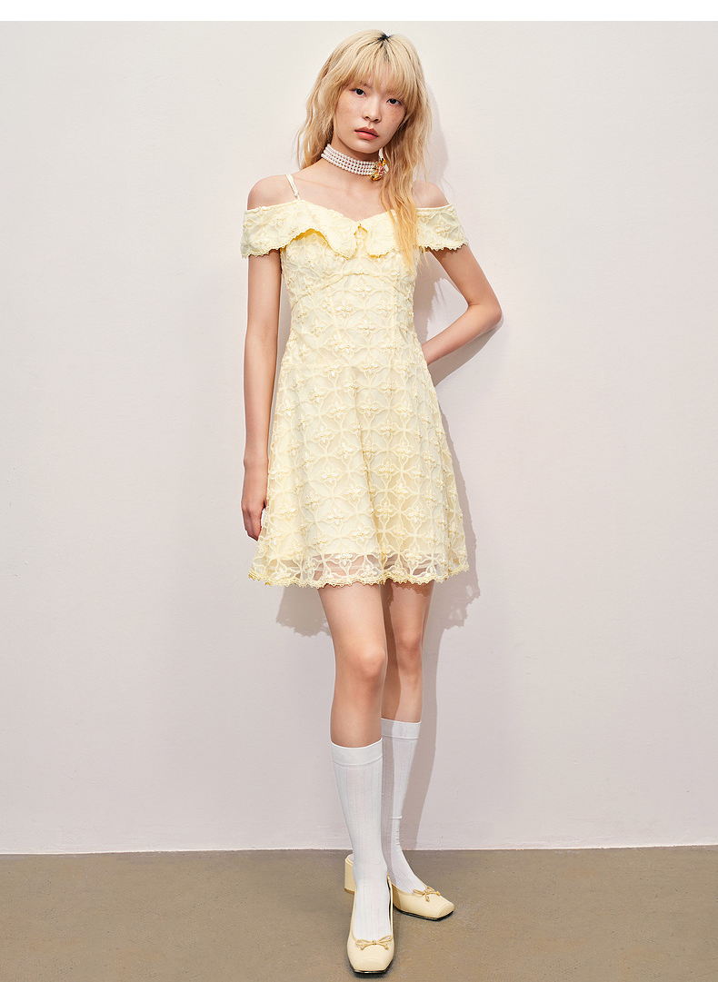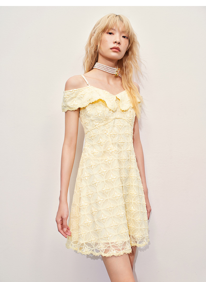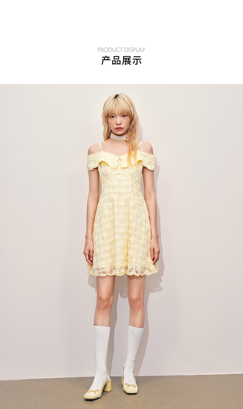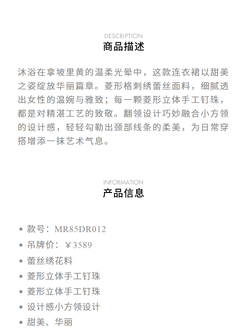 MAXRIENY华丽甜美钉珠刺绣翻领连衣裙(货号:MR85DR012)