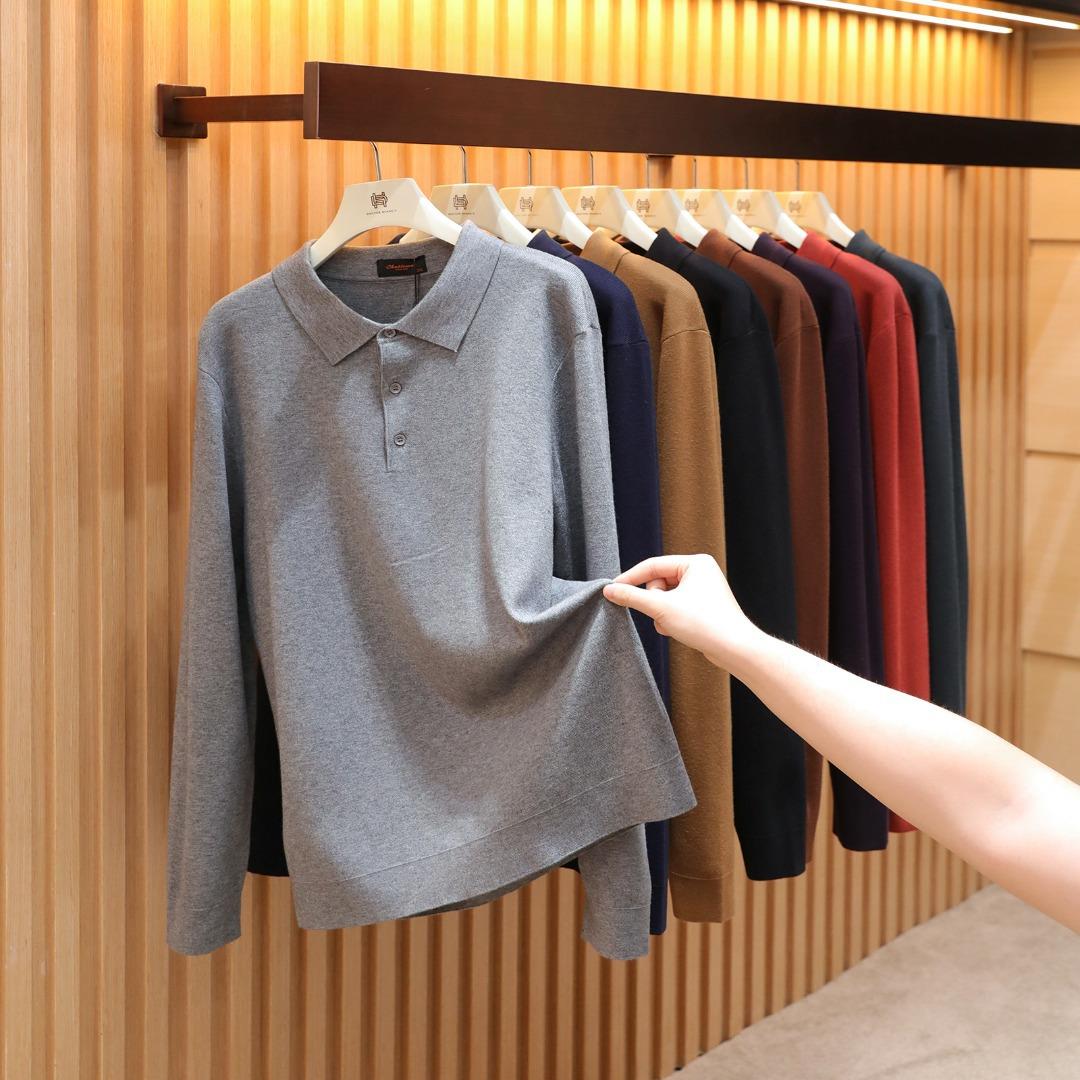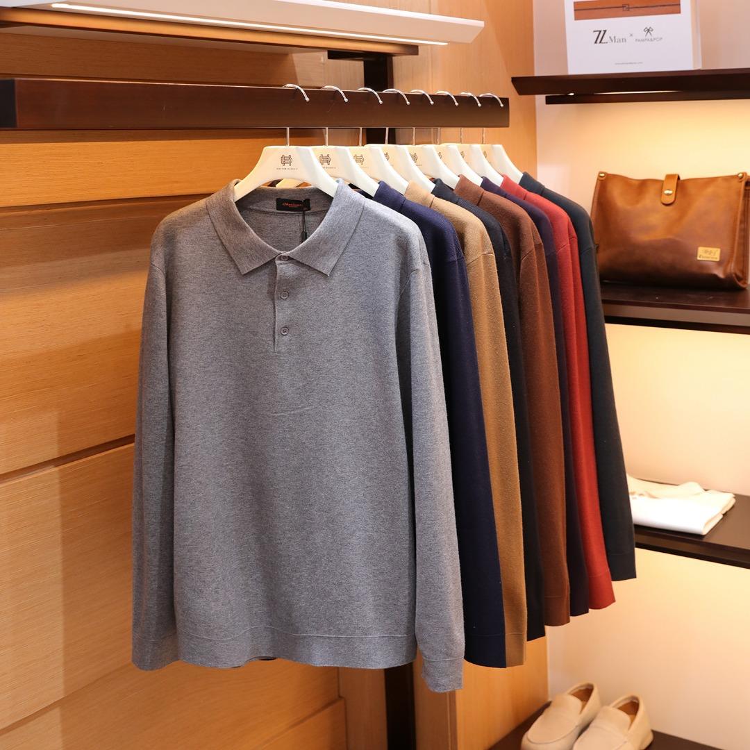 【优雅绅士意奢老钱风】 男士480g羊毛混纺针织长袖POLO衫
