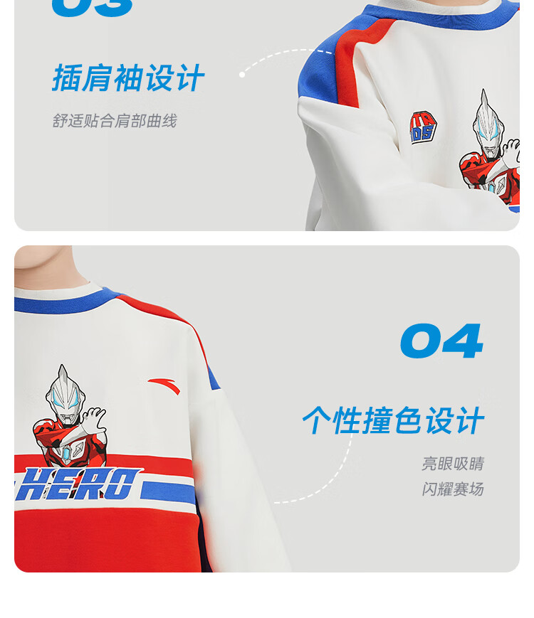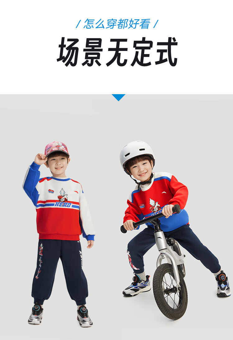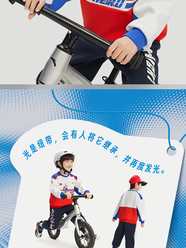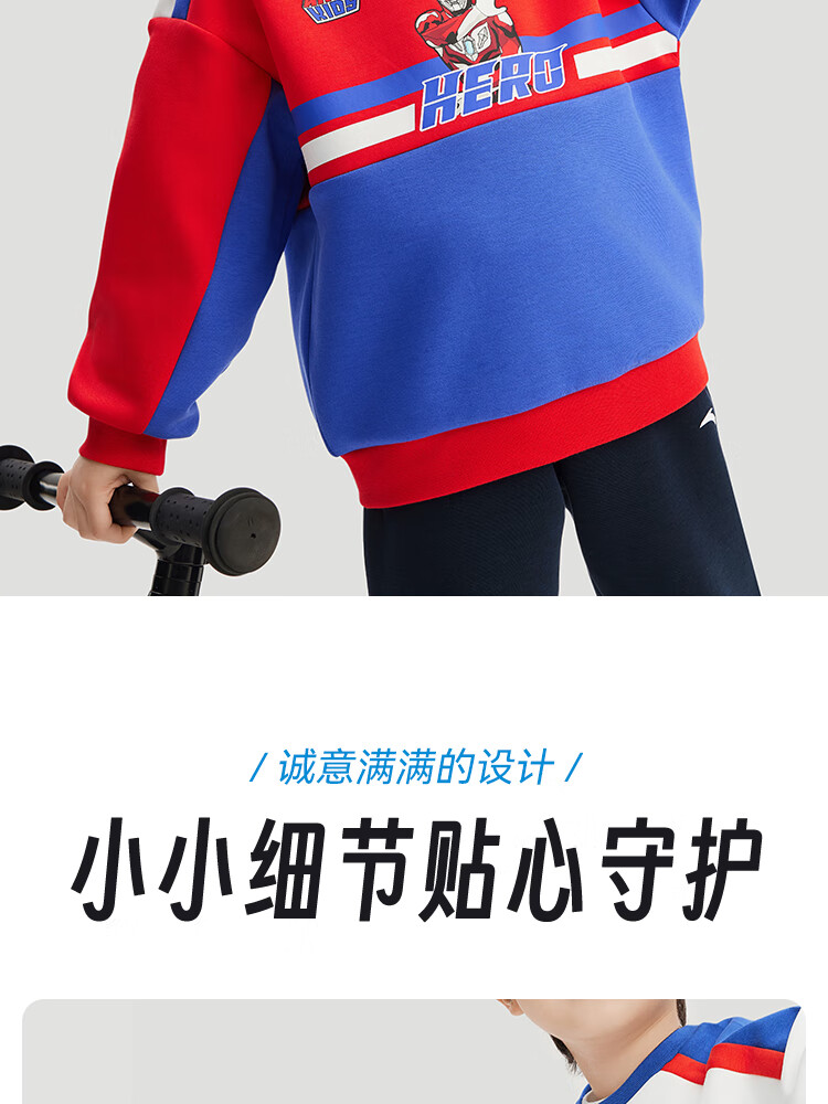安踏儿童男童套头衫春秋小童亲肤柔软休闲款撞色运动卫衣352519711