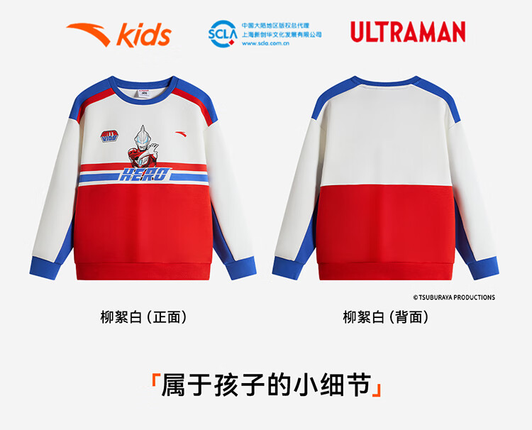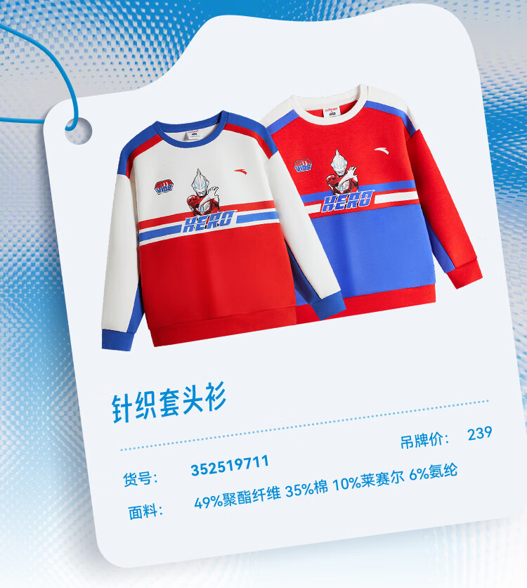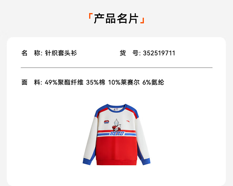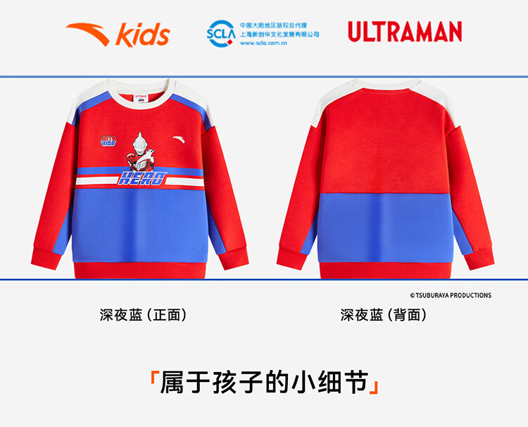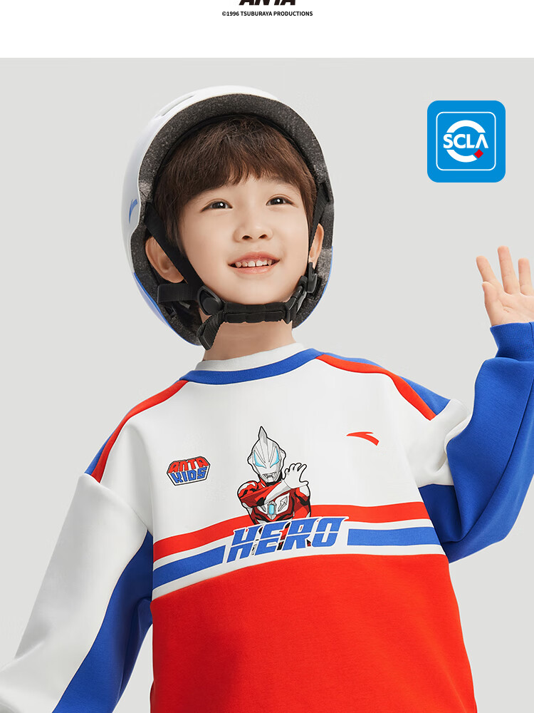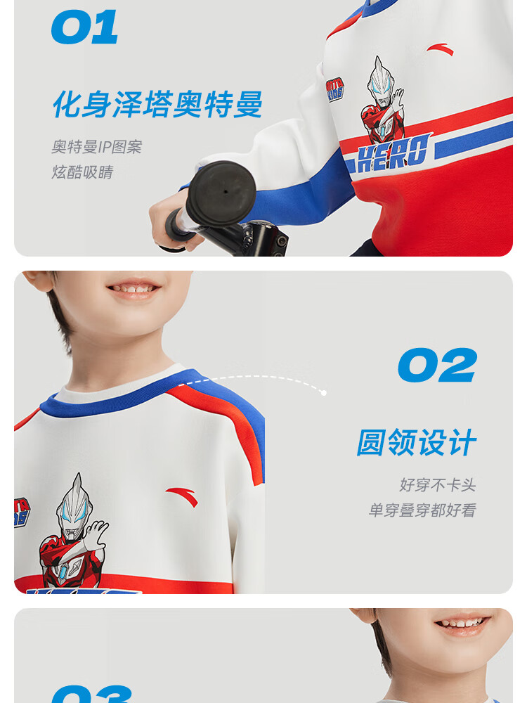 安踏儿童男童套头衫春秋小童亲肤柔软休闲款撞色运动卫衣352519711