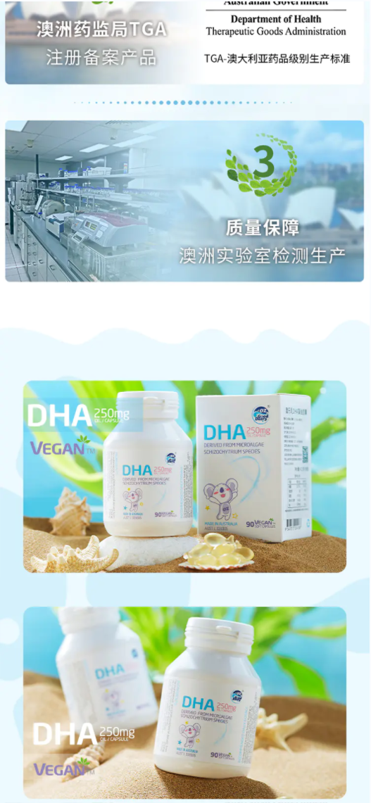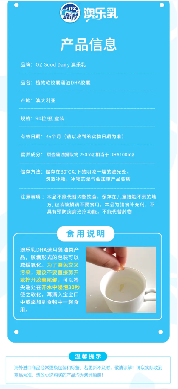 【澳乐乳】DHA婴儿儿童宝宝dha藻油胶囊澳洲原装进口 儿童DHA藻油胶囊90粒*1瓶