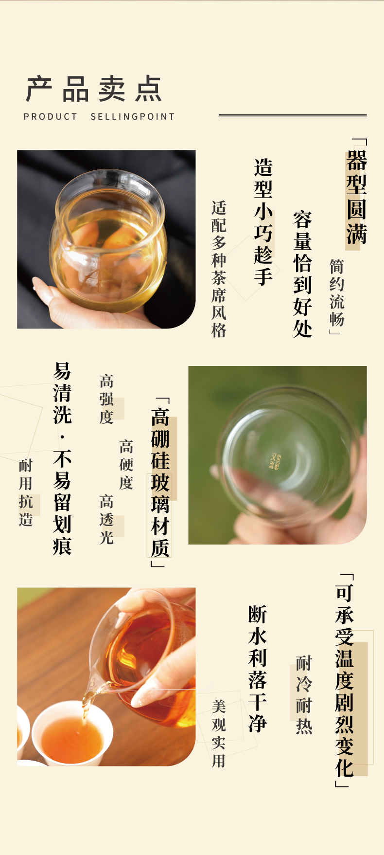 3、采用高硼硅玻璃材质,具有耐高温、高强度、高硬度、高透光的特点,可承受温度剧烈变化,易清洗不易留划痕,耐用抗造。