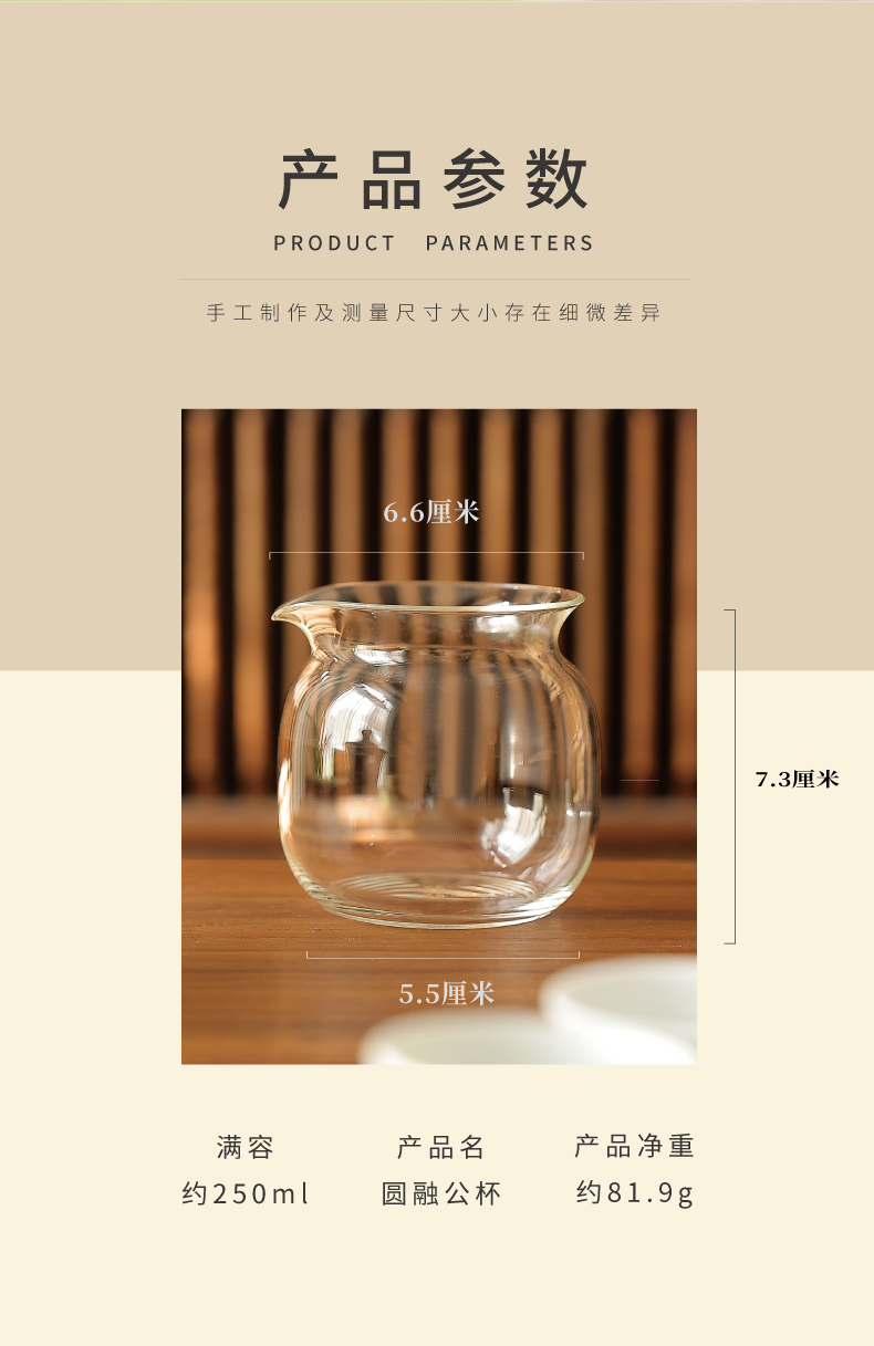 •名称:【汉世流彩】高硼硅水晶玻璃圆融(无把)公杯满容约250cc