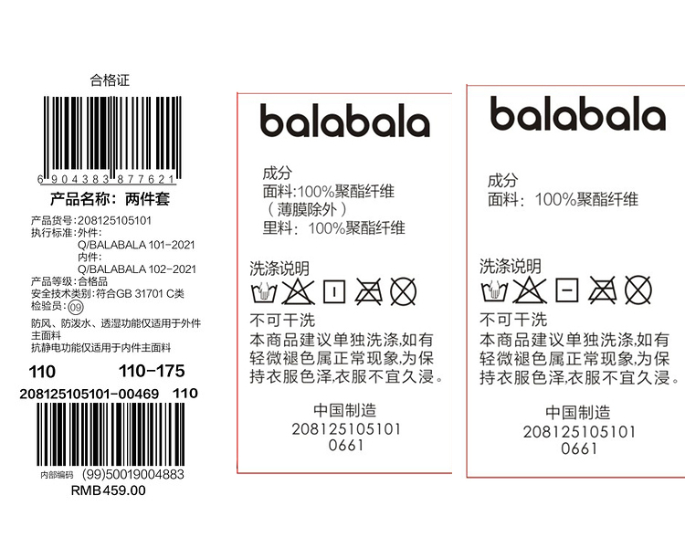 巴拉巴拉童装男童外套儿童棉服2025年新款春上衣防水两件套拜年服