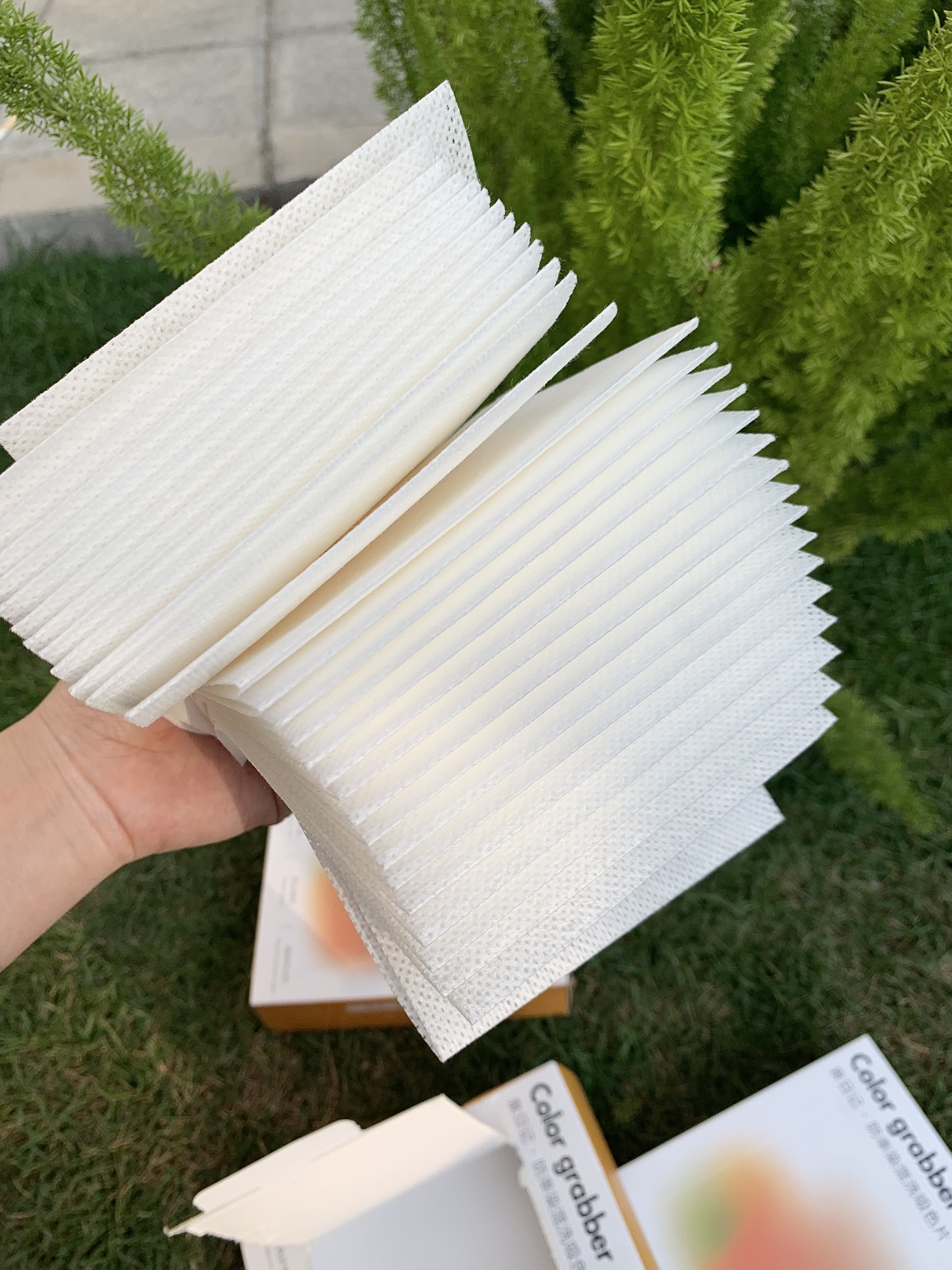 答:如果使用后的吸色布上面没有颜色,或者只有斑驳 不均匀的颜色块,可以确定掉色的染料不是活性染料;如果使用后的吸色布已经均匀铺满颜色,就可以确认是活性染料,但是掉色太多了,使用的吸色布数量不够,这时需要增加吸色片的用量。