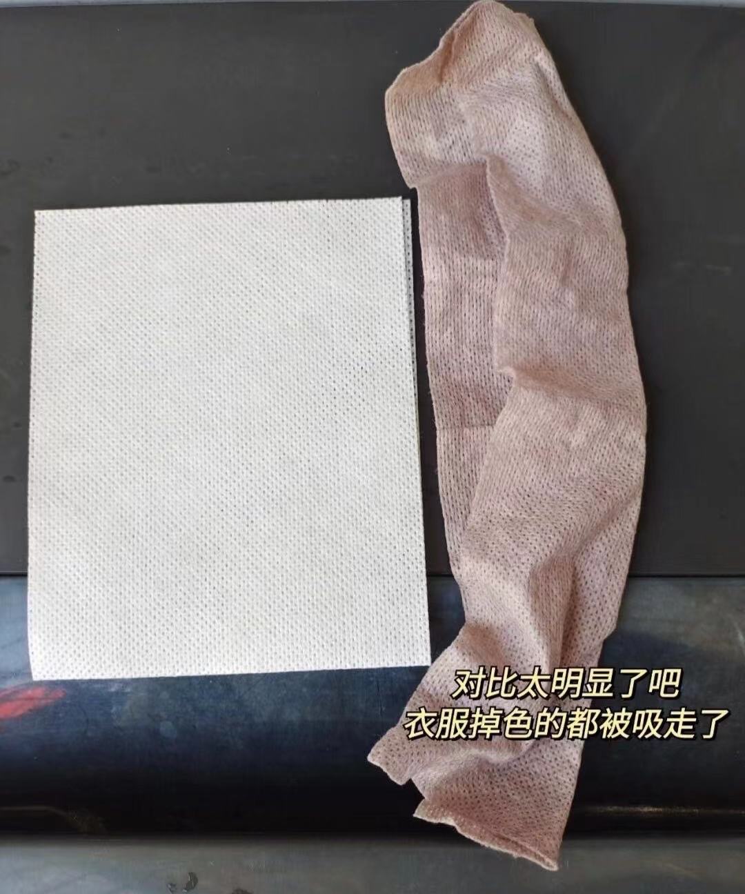 答:吸色片的功能就是快速吸附水中的活性染料,市面上大部分的衣服都是活性染料。而有些衣服是特殊工艺或油性染料色牢度比较差,这种情况吸色片是吸附不了的。