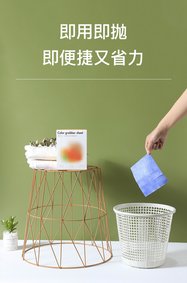 强效吸色防染吸收在洗衣过程中衣物的各种染料离子和尘垢有效防止混洗时串色情况的发生