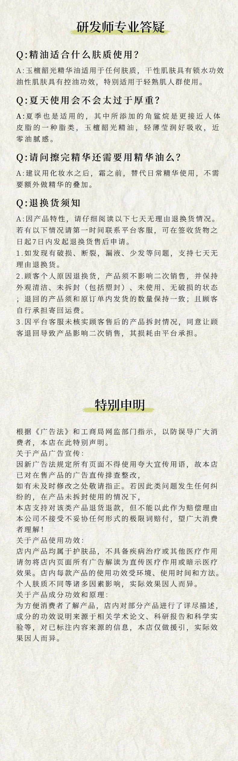 全新升级 玉檀韶光精华油15ml/瓶 预