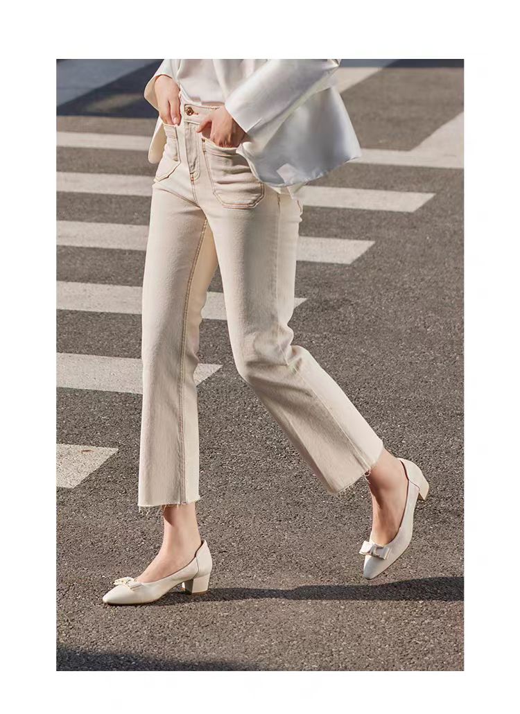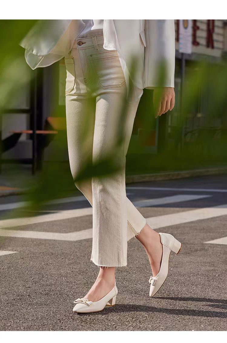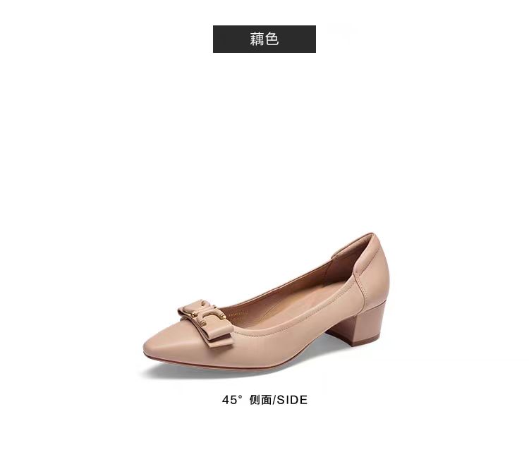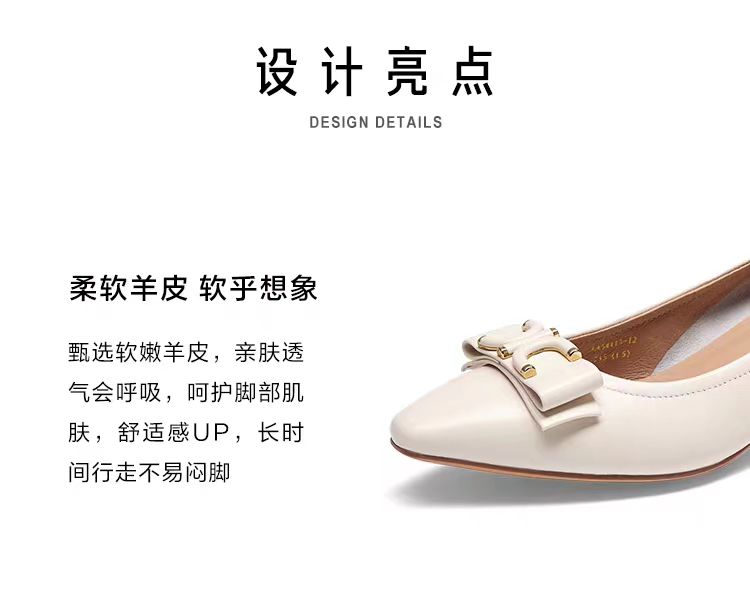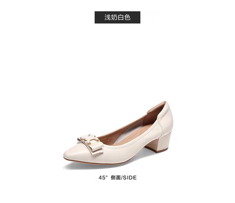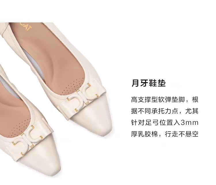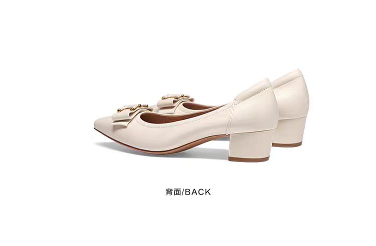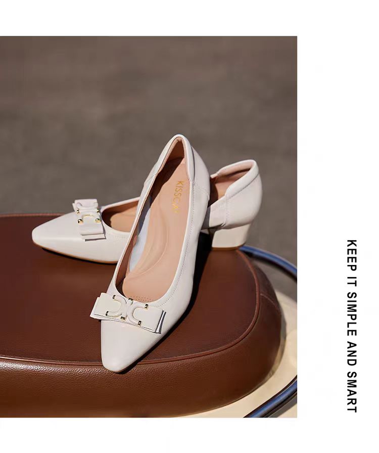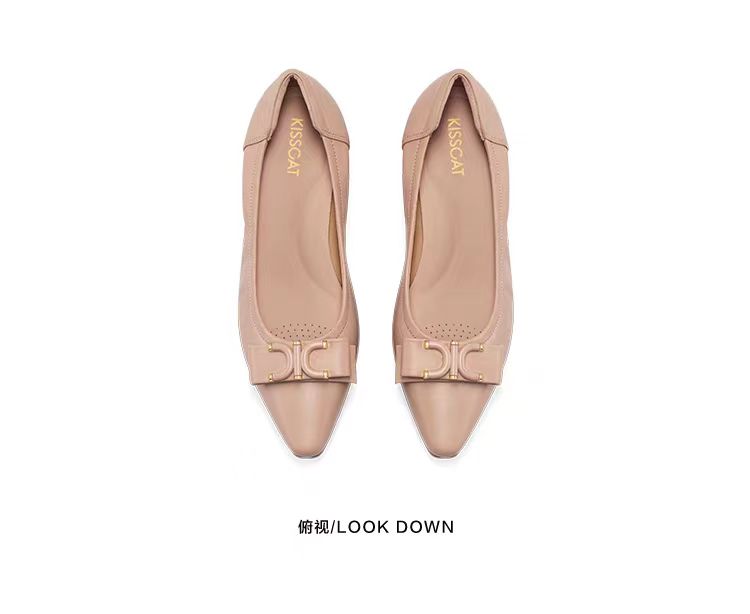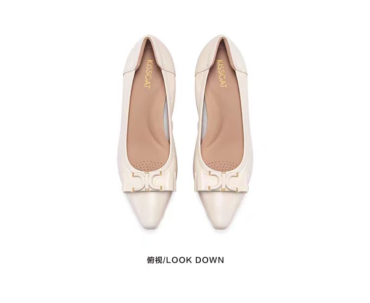 KISSCAT接吻猫2024年新款粗跟舒适气质饺子鞋蝴蝶结通勤单鞋