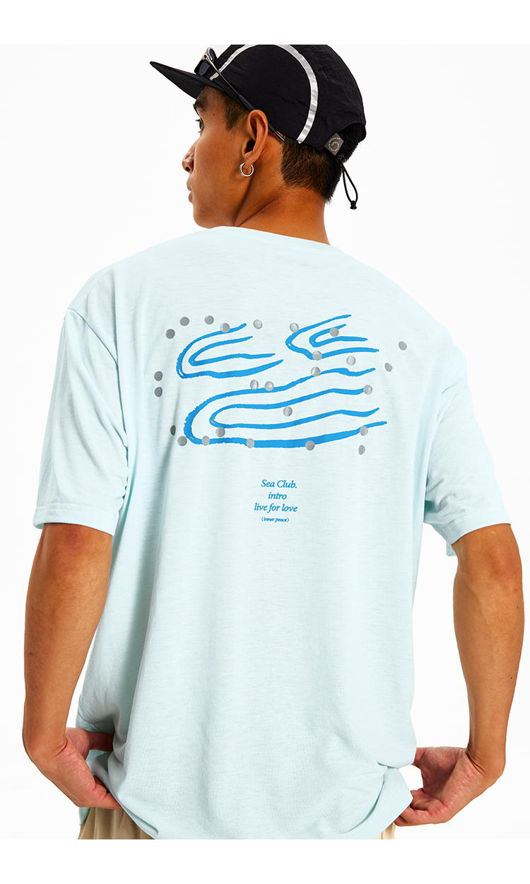 CryingCenter 反光浆河流波点水纹速干宽松运动休闲短袖T恤