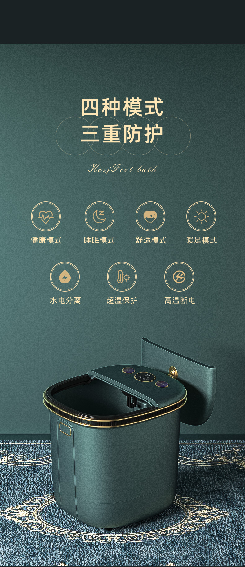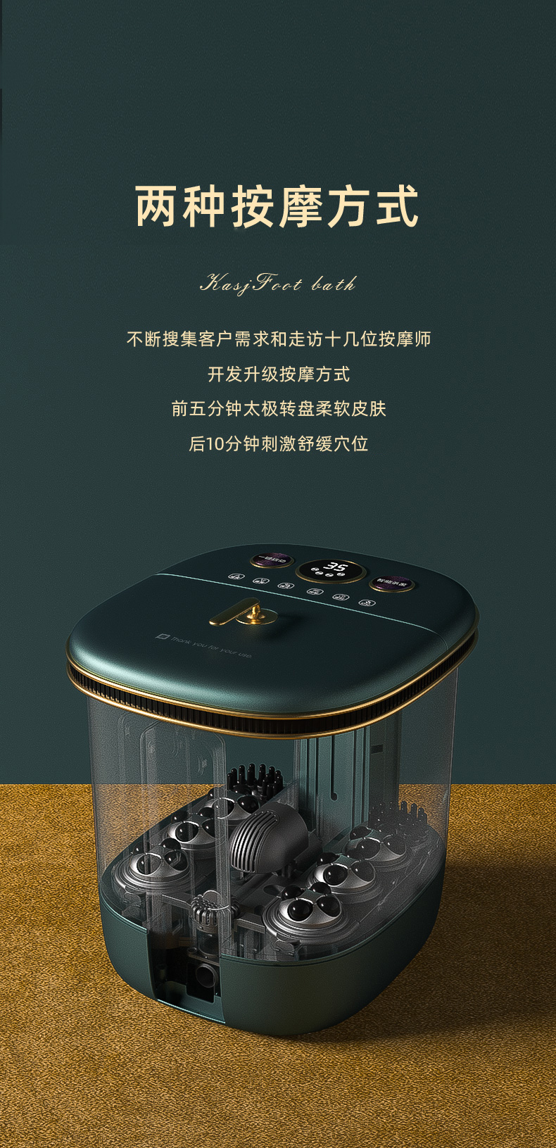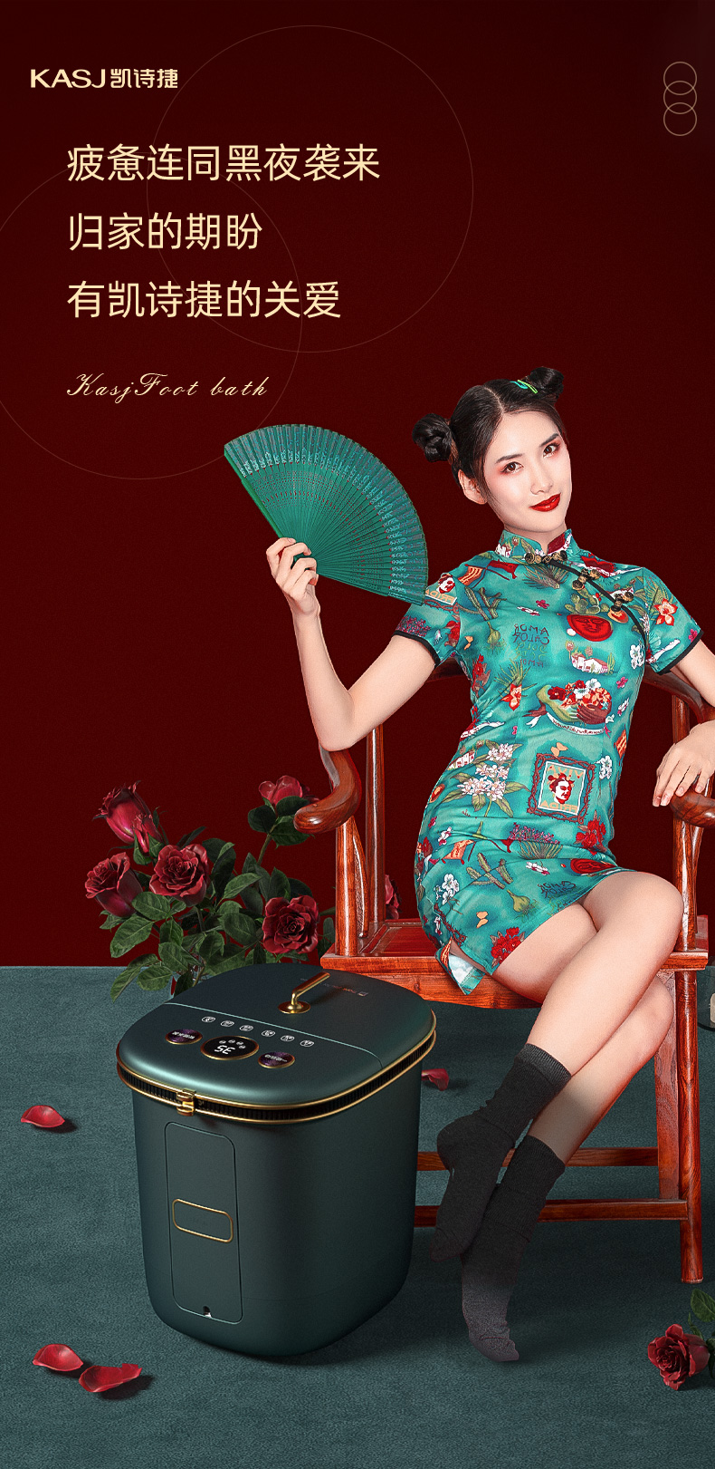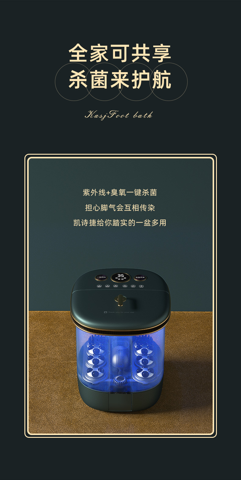 凯诗捷(KASJ)泡脚桶全自动泡脚盆加热恒温电动按摩紫外线杀菌家用过小腿洗脚足浴盆送朋友父母长辈母亲领导 心选到家