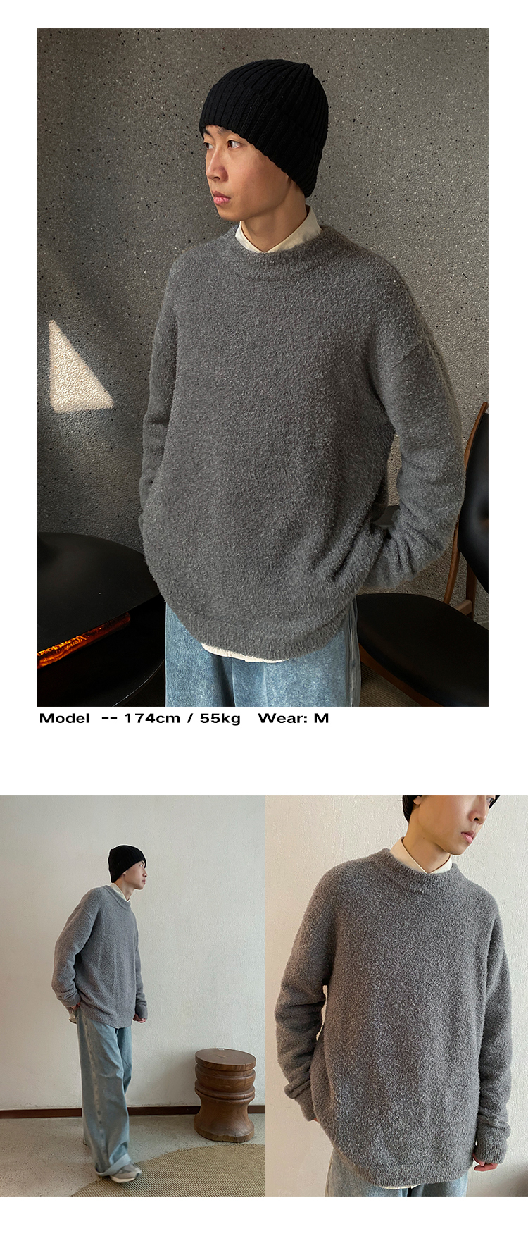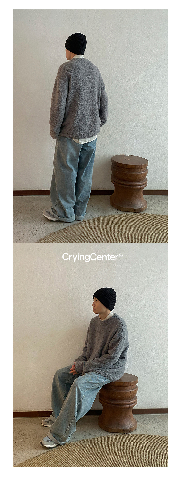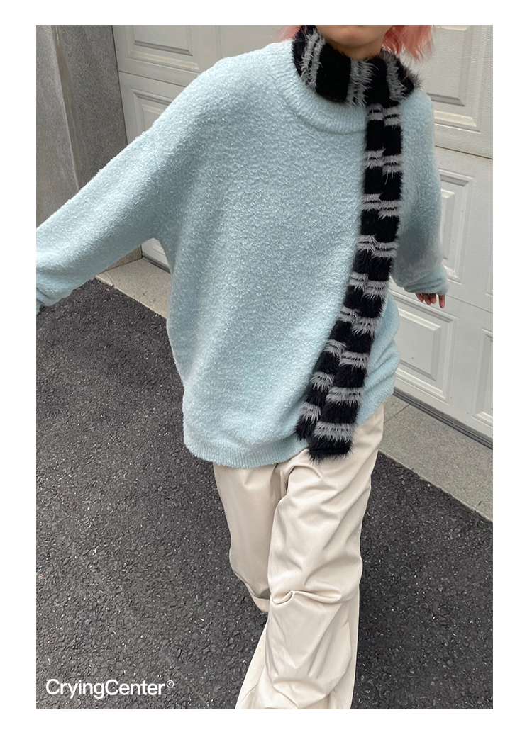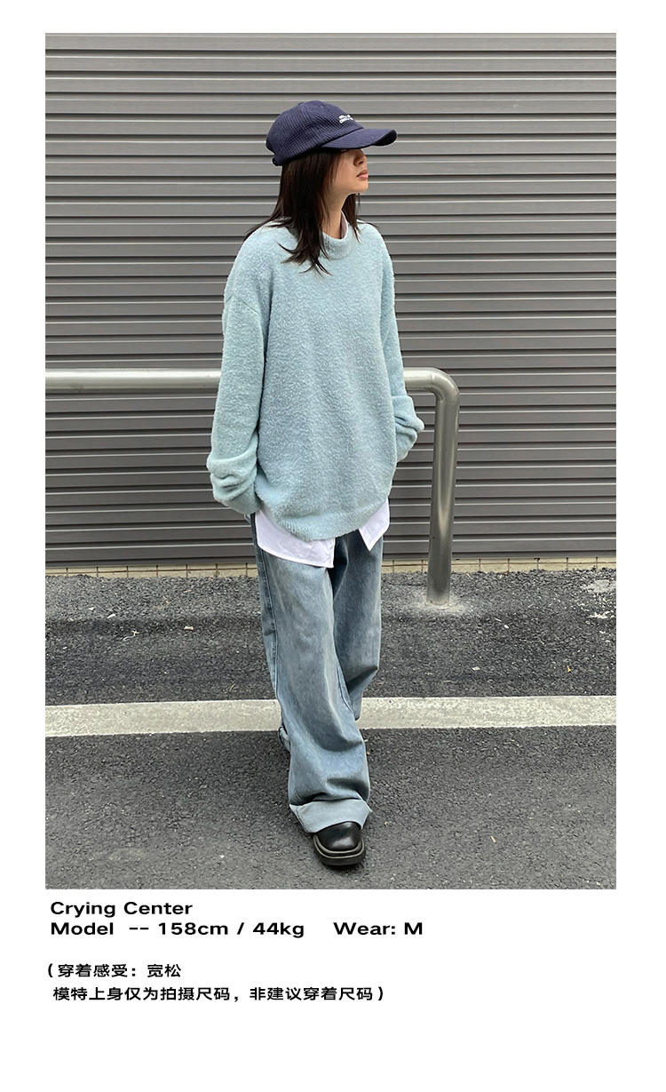 CryingCenter 软糯糯仿熊毛宽松套头毛衣 蓝色/灰色 哭喊中心