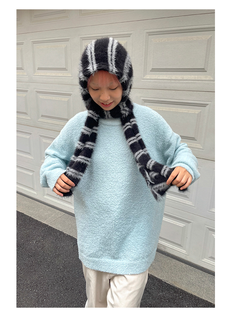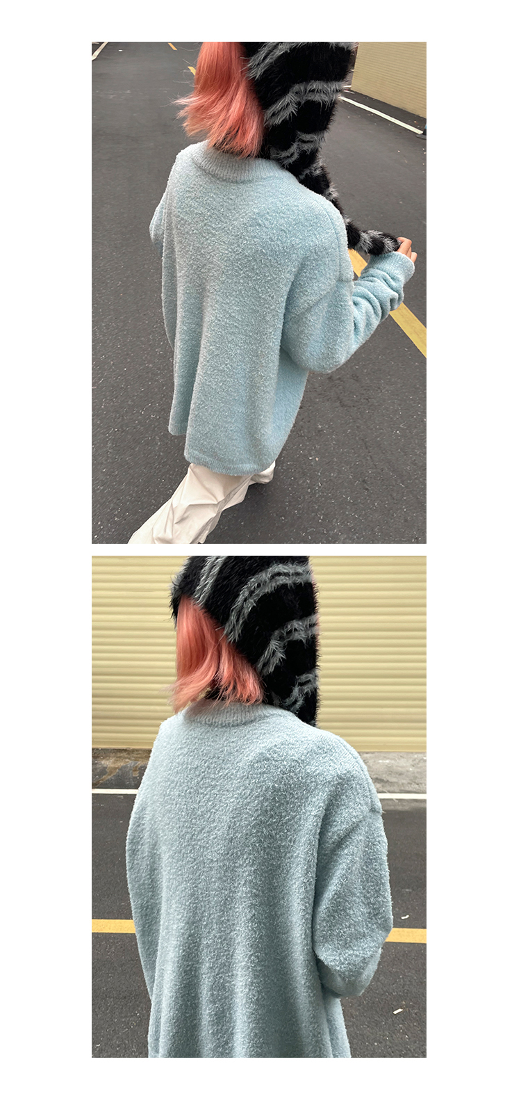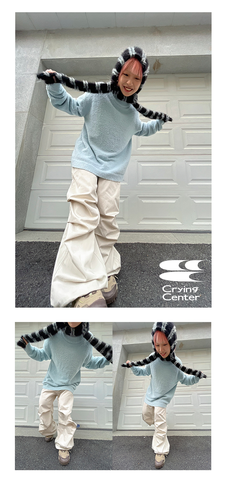 CryingCenter 软糯糯仿熊毛宽松套头毛衣 蓝色/灰色 哭喊中心