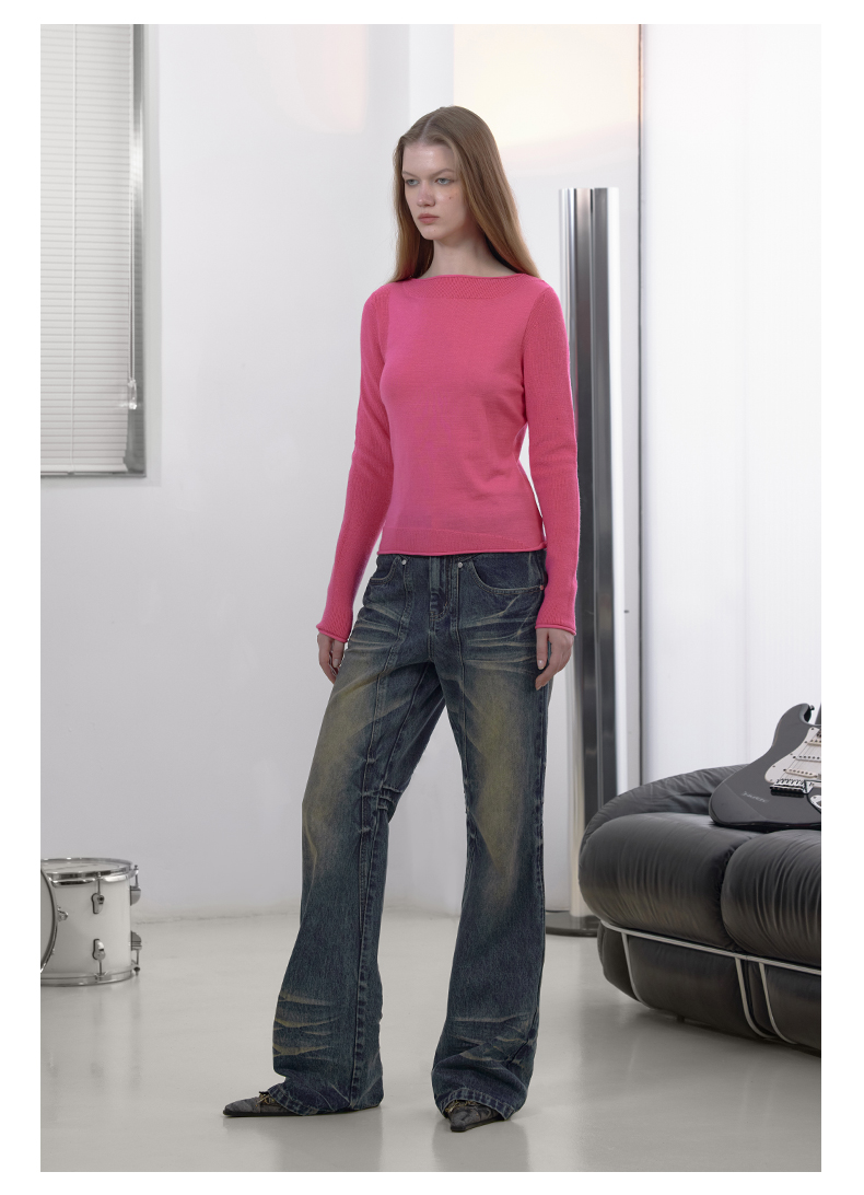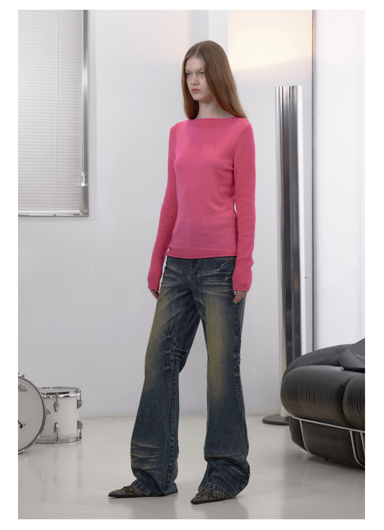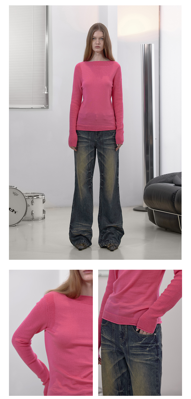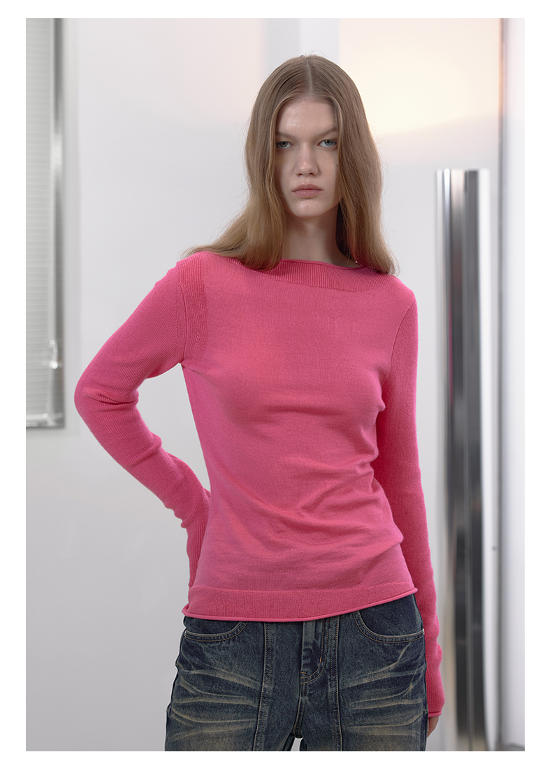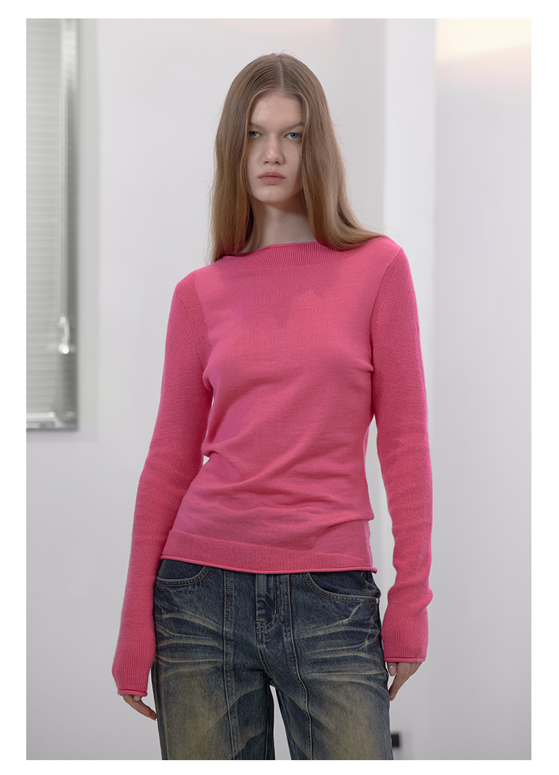 NUTH“玫瑰庞克”|桃红色针织衫修身显瘦长袖打底上衣