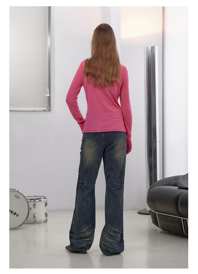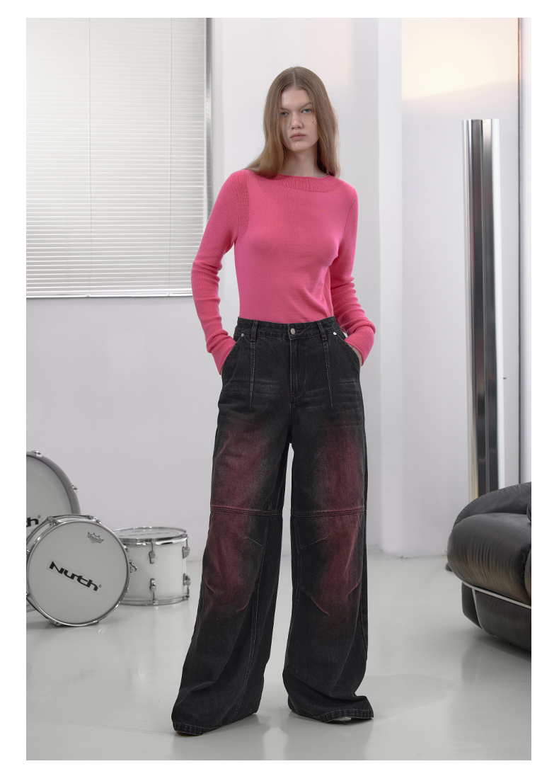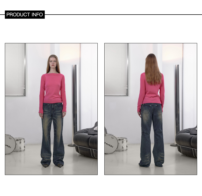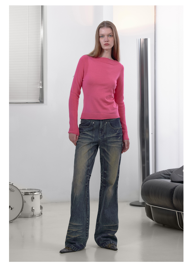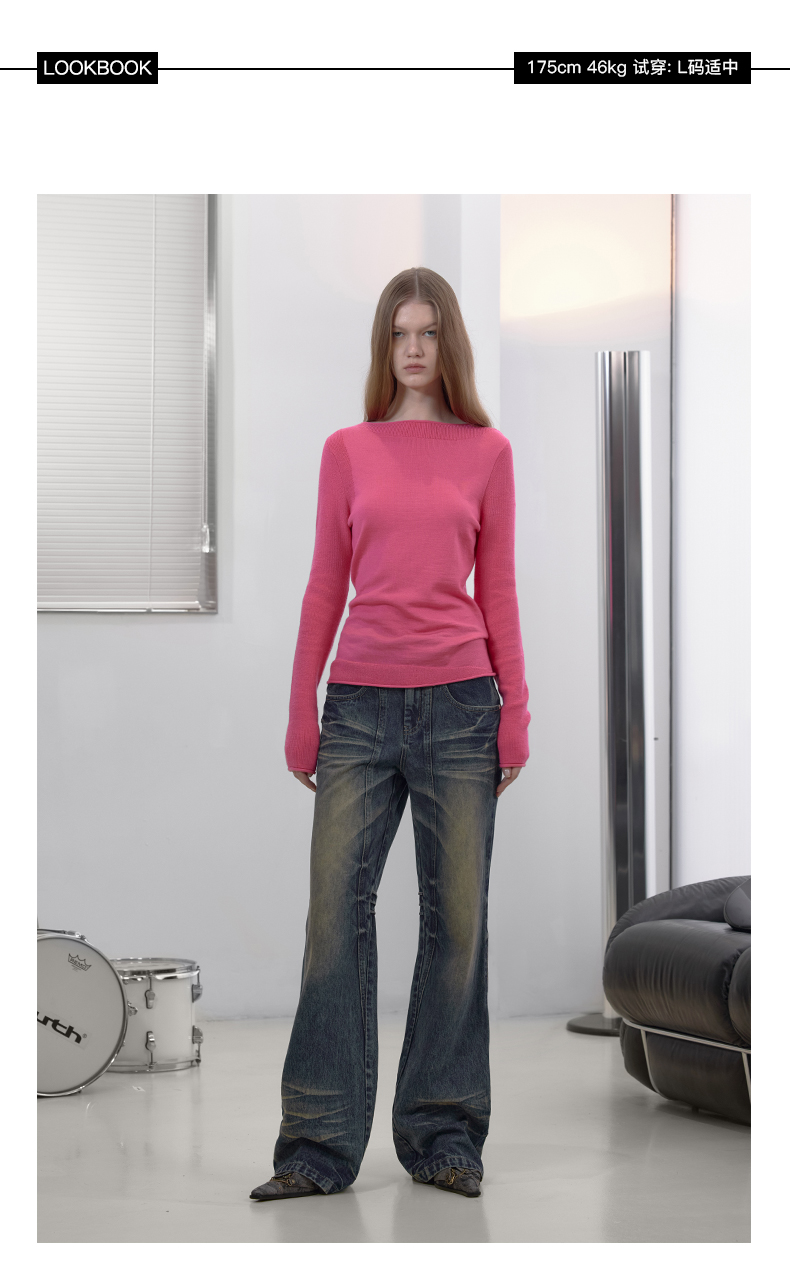 NUTH“玫瑰庞克”|桃红色针织衫修身显瘦长袖打底上衣